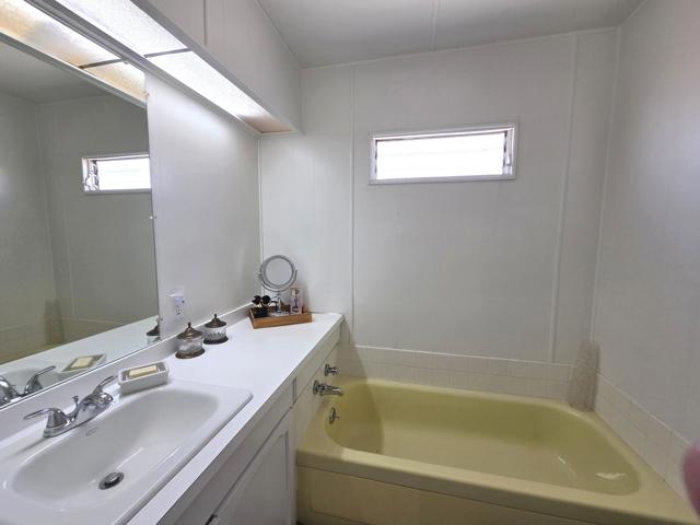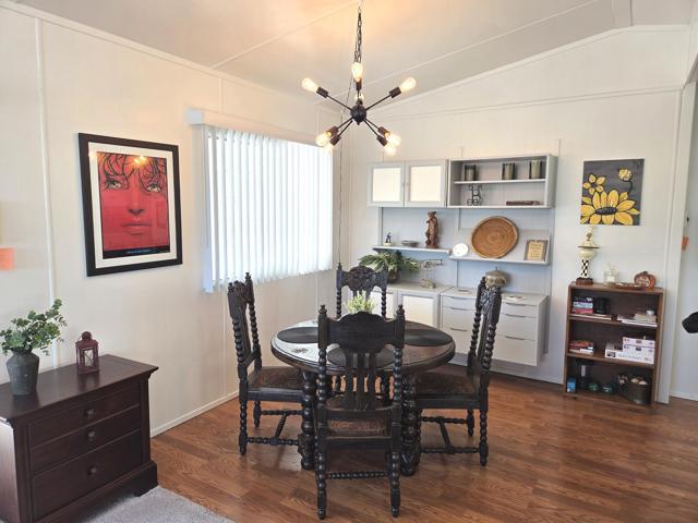 Located in the Royal Palms 55+ community, 179 Butterfield, a 1963 Mayflower 960 sq. ft., two bedroom mobile home with two 3/4 baths, is a stunningly beautiful desert retreat that has been elegantly appointed and meticulously maintained. Entry to the residence is through a lovely west-facing deck with steps that open into the tasteful, bright, carpeted living room; immediately to the left is the dining area with lovely built-ins, a modern chandelier and striking laminate flooring that extends into the adjacent kitchen. Equipped with a four-burner cooktop and an original (working) oven, the kitchen is light, airy and well-organized. Down a short hallway is a bright and roomy guest bedroom with amazing built-ins. Opposite is the guest bathroom with a shower stall and updated vanity. At the east end of the home is the spacious, well-appointed primary bedroom with ensuite bath with tub. A notable feature of this lovely home is the striking high-ceilings that exist throughout the structure. Tandem parking is under a carport awning on the east side of the home; there is a shed on the premises as well. Climate control in the home is through central AC / heat with new Nest thermostat, and a swamp cooler as well; ductwork under the home was renewed in 2022. Royal Palms has two community laundry facilities within the park, each of which within easy reach. 179 Butterfield is sold fully furnished though there is a short list of seller exclusions. Approval by park management at the Royal Palms is required for purchase; monthly space rent for this home will be $892.00 per month for the new owner, though that figure must be verified by any buyer.