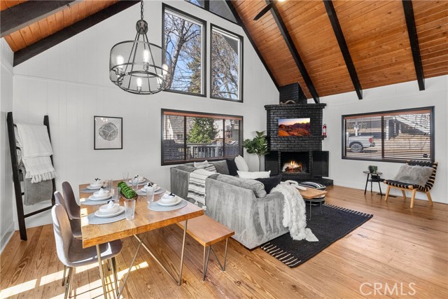 In the heart of the Palisades community, this multi-level cabin is a true masterpiece designed to embrace the beauty of nature. From the moment you enter, you’ll be greeted by rich wood, high ceilings, and striking black accent beams. The bold black fireplace serves as a stunning focal point in the living room, creating the perfect ambiance for cozy evenings or entertaining guests. The kitchen will instantly capture your attention with its pristine white cabinetry, sleek backsplash, and thoughtful layout. Whether you're preparing a meal or enjoying a quiet morning coffee, the breathtaking view of the surrounding nature will always be in sight. The entry level is as functional as it is stylish, featuring a full bathroom with a striking design. The shower, adorned with vertical white tiles and a bold black octagonal floor, elevates the space and offers a spa-like retreat after a day spent outdoors. Your guests will appreciate the convenience of having everything easily accessible on this main floor, where elegance meets practicality. On the upper level, the bedroom boasts soaring ceilings and breathtaking nature views, making you feel completely immersed in the natural beauty that surrounds you. The upper-level half-bathroom features playful and chic tile flooring, adding a touch of charm. The lower level presents the ultimate primary suite—a true sanctuary. With two sets of double doors leading to your private deck, this room is the ideal space to breathe in the crisp mountain air during a morning yoga session or evening meditation. The ensuite bathroom features a spacious shower with a generous caddy area, a freestanding bathtub with a striking black faucet and tub wand, and a double vanity with wall-mounted black faucets providing ample space for all your essentials. A second bedroom on this level adds to the inviting atmosphere, making it a perfect retreat for guests. A private laundry area enhances the home’s convenience. This cabin offers unbeatable outdoor living, with a welcoming front deck and a wraparound design that leads to two additional decks at the rear. Whether you’re entertaining guests or seeking solitude, the property’s layout provides plenty of space to take in the breathtaking nature views. Incorporate this breathtaking property into your portfolio and embrace a lifestyle with full lake rights, where every day feels like a getaway.