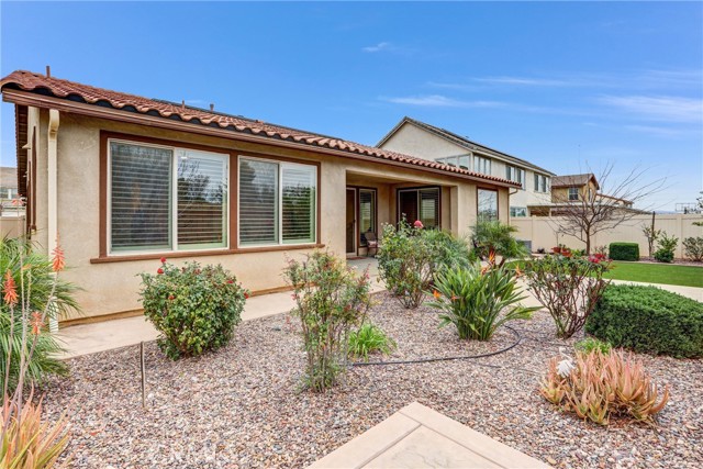 This Beaumont home is a MUST-SEE!! Situated on a quiet cul-de-sac in the highly desirable Sundance North community of Beaumont, this meticulously maintained 4-bedroom, 3-bath residence offers comfort, efficiency, and refined living. Pride of ownership is evident throughout, with soaring ceilings, recessed lighting, plantation shutters, and newer vinyl dual-pane windows enhancing both style and energy performance. The expansive kitchen is designed for both everyday living and entertaining, featuring premium appliances, abundant cabinetry, a walk-in pantry, and seamless flow into a separate dining area. Thoughtfully selected flooring includes tile in the kitchen, durable vinyl throughout main living spaces, and plush carpet in the bedrooms. Energy-efficient features help reduce utility costs and enhance year-round comfort, including central HVAC, a whole house fan, tankless water heater, solar system, and interior fire sprinkler system. Step outside to a private, low-maintenance backyard retreat with high perimeter walls for added privacy. Enjoy the covered lanai-style patio, artificial turf, and your own orchard with mature apricot, apple, persimmon, lemon, lime, fig, and guava trees — all maintained by an automatic irrigation system. Additional highlights include a 3-car garage with epoxy flooring and automatic openers, plus an extended driveway for additional parking. Low HOA dues of $161 per month provide access to Sundance North amenities including three pools, children’s play areas, and a basketball court — offering a true resort-style neighborhood experience. A turnkey opportunity combining space, privacy, and community living — ready for its next chapter.