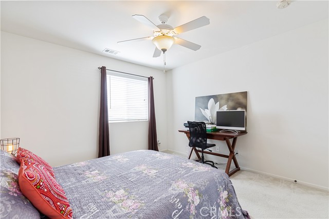 Welcome to this stunning two-story residence nestled in the highly sought-after Madeleine Court community—where comfort, space, and smart upgrades come together beautifully. Boasting approximately 2,595 square feet of living space on a generous 7,289 square foot lot, this 5-bedroom, 3-bathroom home offers the perfect blend of functionality and elegance. The main level features a bright, open-concept layout designed for both everyday living and entertaining. The spacious dine-in kitchen showcases rich wood cabinetry, Corian countertops, a center island, and abundant storage, all flowing seamlessly into the expansive family room—ideal for hosting gatherings or enjoying cozy evenings at home. Upstairs, you’ll find four well-appointed bedrooms, including a luxurious primary suite complete with a walk-in closet and a private ensuite bathroom featuring a soaking tub and separate shower. An upstairs laundry room adds convenience to your daily routine. This home is thoughtfully upgraded with 22 PAID-OFF solar panels for energy efficiency and long-term savings, a reverse osmosis drinking water system, water softener, expanded driveway and walkway, insulated garage door, mirrored closet doors, and ceiling fans in every bedroom, as well as the loft and living room. The charming porch rail adds to the home’s inviting curb appeal. Step outside to your private backyard—perfect for weekend barbecues, outdoor dining, and making lasting memories with family and friends. Enjoy the benefits of a low HOA that includes access to a community pool, spa, clubhouse, playground, and private security—offering both lifestyle and peace of mind. This is more than just a home—it’s the lifestyle upgrade you’ve been waiting for