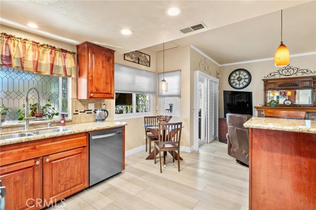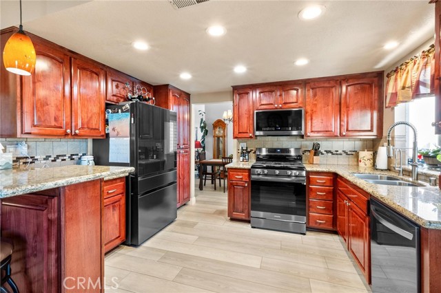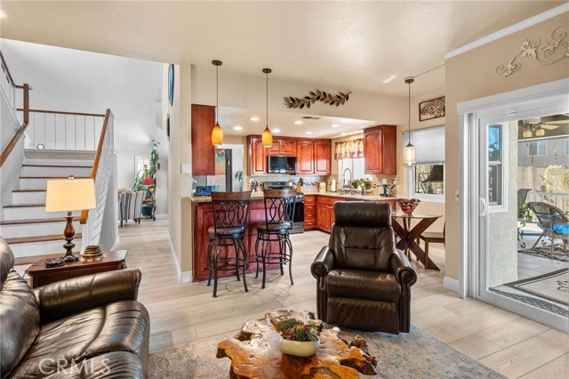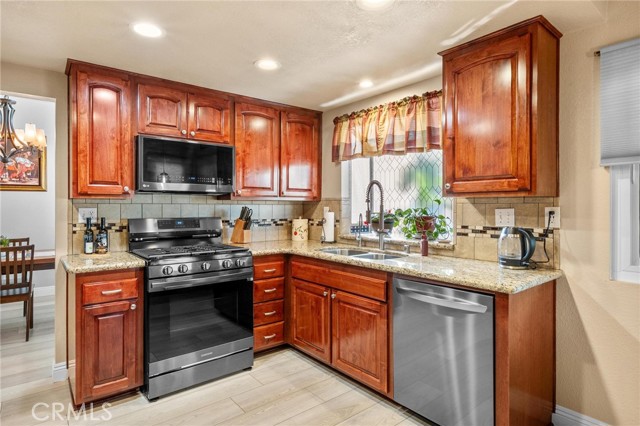 First time on the market since 1990! Pride of ownership shines in this beautifully maintained 3-bedroom, 2.5-bath home offering 1,528 sq. ft. of living space on a 6,000 sq. ft. lot. Purchased brand new by the original owner and meticulously cared for ever since, this is a rare opportunity to own a truly turnkey property in established Yucaipa. Step inside to a functional and inviting floor plan featuring a formal living room, formal dining room, and a warm, welcoming family room with fireplace—perfect for gatherings or cozy evenings at home. The upgraded kitchen is a standout with granite countertops, black stainless steel appliances, and rich stained wood cabinetry that offers both style and functionality. Thoughtful upgrades throughout include laminate wood flooring, upgraded lighting fixtures, whole house fan, dual-pane windows, security screen door, upgraded water heater, interior and exterior paint, and classic window shutters throughout. The remodeled primary bathroom adds a fresh, modern touch. A major bonus: the attic was recently sanitized with brand-new insulation installed for improved efficiency and comfort. Step outside to a private backyard retreat complete with mature landscaping, a large patio cover with roll-down shades for year-round enjoyment, two orange trees and one apple tree, and a newer storage shed just a few months old. Block walls and vinyl fencing provide added privacy, and the tile roof adds lasting value. No HOA. Immaculate. Move-in ready. This is the kind of home that doesn’t come around often — lovingly maintained, thoughtfully upgraded, and ready for its next owner to make new memories.