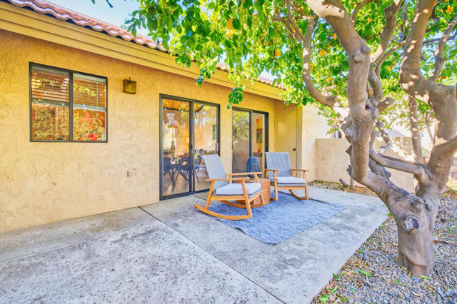 Premier Desert Living in Rancho MirageDiscover an exceptional opportunity to elevate your lifestyle in this premium end-unit at back of complex, designed with the privacy and spaciousness of a single-family home. From the sleek all-tile flooring to the stainless steel appliances, every corner reflects tasteful modern upgrades.Interior HighlightsArchitectural Charm: Soaring vaulted beamed ceilings create an airy, light-filled atmosphere in the main living area.Indoor-Outdoor Flow: Dual sliders open to an expansive, ultra-private jumbo patio--perfect for entertaining or quiet desert evenings.Serene Master Suite: Features a large walk-in closet and direct access to the patio.Premium Features & LocationRare Convenience: Includes a private two-car garage located just steps from your front door.Picturesque Views: Overlooks lush lawns and mature fruit trees, framed by the small mountain that defines the community.Resort Amenities: Enjoy access to sparkling pools, relaxing spas, and tennis courts.Value: You own the land (Fee Land) in a prime Rancho Mirage location near the desert's best activities, dining and shopping.Don't miss out--properties with this unique combination of features are a rare find. Book your showing today!