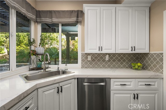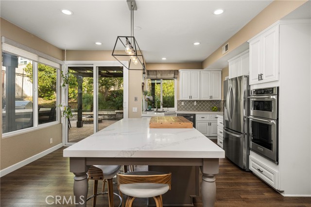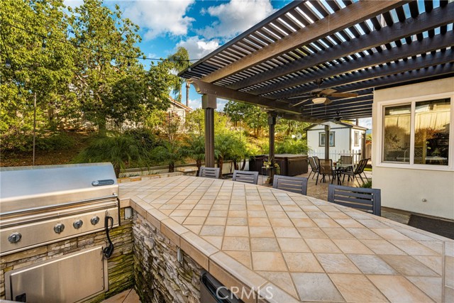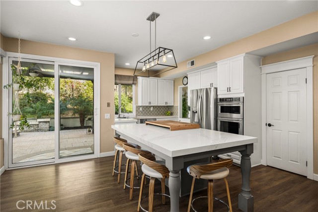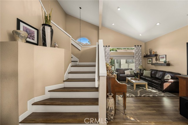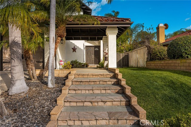 Come and check out this gorgeous home on a quiet street in the desirable Bryant Ranch area of Yorba Linda. This home is a must see for anyone looking to move into this sought after neighborhood. With an open floor plan boasting an abundance of windows and natural light, you walk in feeling at home. The 2203 sq ft., featuring 4 bedrooms and 3 baths, plus a fully finished 120 sq. ft. detached structure with AC that makes a great office or craft room. The 3-car garage also has ample storage space above and there is RV parking along the side with a sewage disposal. This home has been updated throughout with many great designer finishes. Waterproof vinyl plank flooring throughout. The beautifully updated kitchen has 10' ceilings, a large island that is great for entertaining, and white quartz countertops with thick countertop edges. The bathrooms have been updated with quartz and granite countertops. The recessed LED lighting comes equipped with smart color changing LEDs in some areas. There are also vaulted ceilings in the living room, dining room, and primary bedroom. The home offers a downstairs bedroom and bath. The spacious primary bedroom features a sitting area, large walk-in closet, double sinks, and separate tub and walk-in shower. There are also dual pane energy efficient vinyl frame windows throughout the entire house. There is a newer HVAC unit, a whole-house water softener system, and a newer water heater. This gorgeous backyard features stamped concrete, a large patio cover with ceiling fans, beautiful hardscape with stacked stone, artificial turf with putting green, above ground spa, fire pit, and a built-in BBQ with bar seating. The neighborhood also features Excellent Award-Winning Schools and is freeway close!