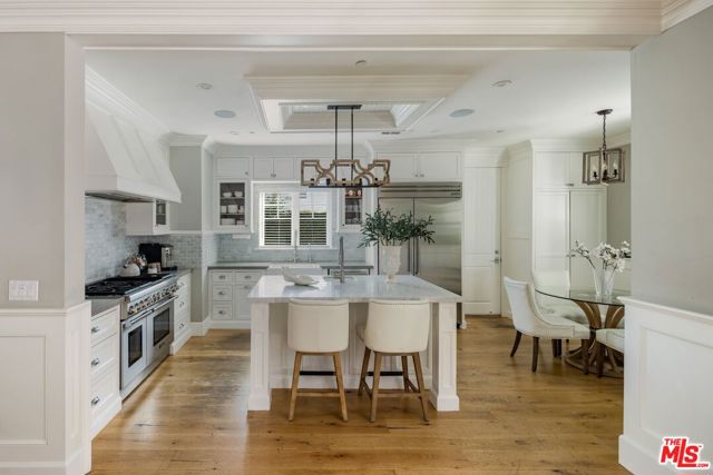 Step into this stunning newer construction home, ideally located at the end of a quiet cul-de-sac in the heart of Sherman Oaks, offering both privacy and tranquility.A light-filled formal living room with soaring ceilings flows seamlessly into the elegant formal dining area, creating the perfect setting for entertaining. Adjacent is the gourmet chef's kitchen, fully equipped with top-of-the-line Thermador appliances, a large stainless-steel center island with seating, and a charming breakfast nook overlooking the pool.The kitchen opens to a chic family room with a fireplace and double glass doors that lead to the enchanting backyard. Designed for true indoor-outdoor living, the expansive covered patio features its own fireplace, ideal for lounging or alfresco dining. The heated saltwater pool and spa, built-in barbecue, pizza oven, outdoor sound system, and additional bar seating complete this thoughtfully designed entertainer's yardcrafted for the ultimate in luxury and relaxation.The expansive primary suite showcases a cozy fireplace, spacious walk-in closet, private balcony overlooking the backyard, and a spa-like bathroom featuring dual sinks, a separate vanity area, freestanding soaking tub, and a large walk-in shower with a bench and rainfall showerhead.Two additional en-suite bedrooms offer generous closet space and large windows that fill the rooms with natural light.Additional highlights include an electric vehicle charger and smart home Creston automation throughout.Welcome to your modern oasis.