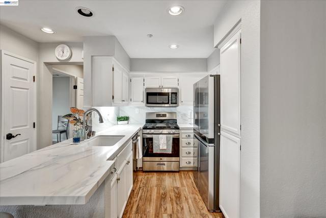 Discover the epitome of modern living and suburban tranquility in this beautifully upgraded home located within a secure gated community on the border of Dublin and Pleasanton. Recently enhanced with over $53,000 in improvements, the residence showcases a newly remodeled kitchen featuring quartz countertops, under-counter sink and faucet, new refrigerator, and fresh interior paint, all illuminated by abundant natural light that flows through the open-concept living spaces. Additional upgrades include updated flooring, a new fireplace mantle, alarm system, A/C, and water heater, creating a home that is both stylish and move-in ready. The vaulted-ceiling primary suite offers a walk-in closet with custom shelving and a stunning spa-inspired bathroom with dual sinks, quartz counters, new mirrors, medicine cabinet, custom tile work, premium glass shower with rain head, and upgraded lighting. The laundry area is conveniently located in the garage. Residents also enjoy resort-style amenities including a pool, tennis courts, and playground, all just minutes from major highways, parks, schools, Costco, and San Francisco Premium Outlets — an exceptional blend of comfort, convenience, and elegance.