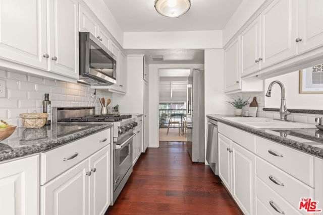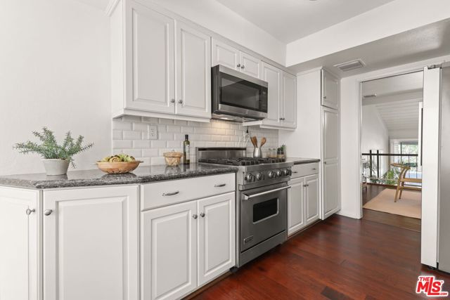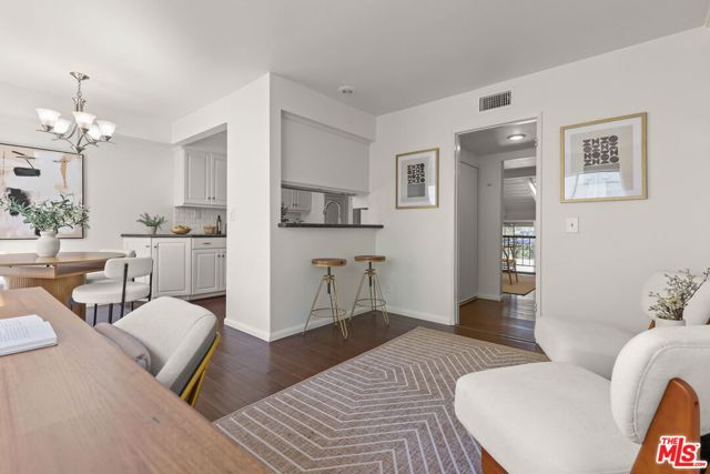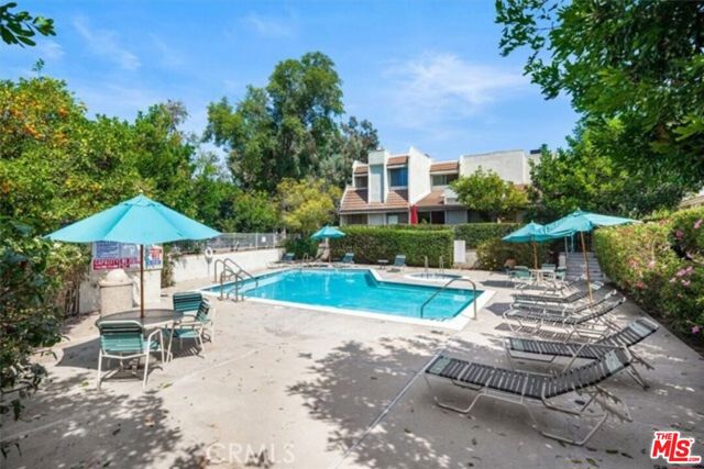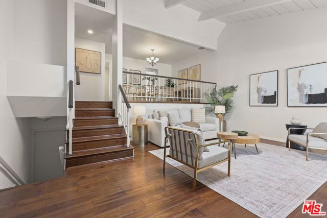 Gorgeous townhome with private, direct access 2-car garage in Studio Village, one of Studio City's most sought-after communities. This tri-level townhome feels like a single family home. Standout features include 2 Bedroom Suites + Den + 3 Bathrooms! Both upstairs bedrooms include their own en suite bathroom and walk-in closet. Plus, there's a den and 3rd bathroom down the hall from the main floor dining room. Step inside the front door and be wowed by the vaulted ceilings, skylight, and clean architectural lines, all bathed in an abundance of natural light. The split-level design features a spacious living room with fireplace and sliding doors that lead to an enclosed outdoor patio. The dining room with built-in bar/buffet offers a dramatic overlook of the inviting living room. The updated eat-in kitchen features Viking range, brand new stainless steel refrigerator, dishwasher & microwave, plus granite countertops. Also features gorgeous engineered wood floors throughout the home, along with central heat & air conditioning controlled by a Nest thermostat. You'll love the private direct access 2-car garage with laundry area and loads storage cabinets. Enjoy indoor-outdoor living with your own private patio off the living room, ideal for BBQs and al fresco dining. The home has just been freshly painted throughout! Studio Village offers resort-style amenities including 6 sparkling pools, 5 spas, 2 tennis/pickleball courts, and community clubhouse. The monthly HOA fee covers a lot, including water, internet, basic cable, exterior maintenance, landscaping, security patrol, and earthquake insurance. All this in a prime Studio City location just two blocks to trendy Ventura Boulevard where you'll find popular restaurants, cafes and shopping, plus top-rated schools (including Carpenter Community Charter School District), and easy access to CBS Radford Studio and 101 & 134 freeways. Also, near Tujunga Village, Woodbridge Park, and the Sunday Studio City Farmer's Market!