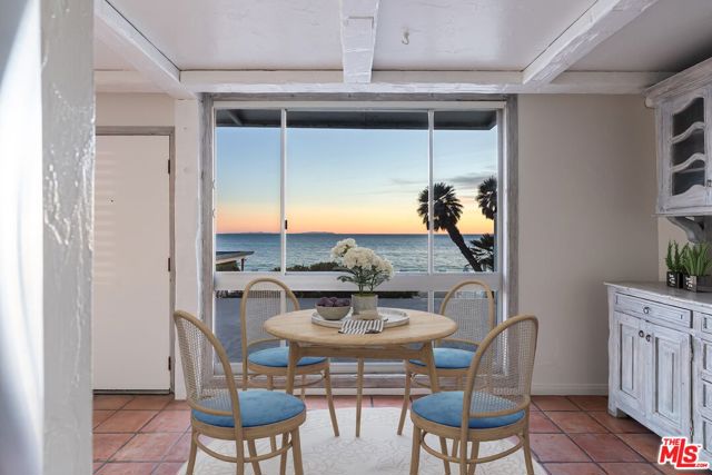 Set on Malibu's iconic Carbon Beach, this rare first-floor corner residence at the Malibu Outrigger captures the essence of refined coastal living. Steps from the private sandy beach and the Outrigger's oceanfront pool and spa, this sophisticated 2-bedroom, 2-bath retreat offers sweeping whitewater vistas from sunrise to the Queen's Necklace glowing at night. Inside, an updated, flexible floor plan blends relaxed elegance with warm, timeless finishes. The open kitchen and spacious dining area flow seamlessly into a living room anchored by a wood-burning fireplace, with distressed wood accents and artisan tile adding texture and character. Walls of glass extend the living space outward to an expansive, intimate patio perfect for morning coffee, sunset entertaining, or dining to the sound of the surf. The premier corner location enhances natural light and coastal breezes, creating an atmosphere of serenity throughout. From this coveted beachfront setting, stroll along the sand to Nobu, Soho House, the Malibu Pier, and the area's most celebrated restaurants. Offering private beach access, resort-style amenities, and an unbeatable Carbon Beach address, this residence presents an extraordinary opportunity to enjoy Malibu living at its most iconic. Property has been virtually staged.
