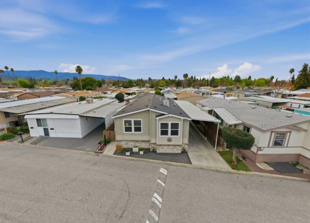 Affordable Luxury Living in San Jose! This elegant 3-bedroom, 2-bath modern manufactured home offers 1,512 SF of bright, open-concept living with soaring ceilings & abundant dual-pane windows that fill the home with natural light & wood shutters to enhance both the aesthetic & peaceful, quiet interior. The spacious living room features a cozy gas fireplace & flows seamlessly into the dining area & expansive chefs kitchen, complete with stainless steel appliances, contemporary cabinetry, generous storage, & beautiful granite counters. Stunning flooring throughout, paired with plush bedroom carpeting, + central A/C creates a move-in-ready vibe. Retreat to the resort-inspired primary suite & ensuite bath showcasing a soaking tub, separate shower, private water closet, & walk-in closet. Outside, enjoy exceptional privacy with shaded screening along the driveway & custom pavers, trellis accents, & lush landscaping in the side and rear patios, creating a serene, Zen-like outdoor escape. Ideally located in the highly desirable 55+ Town & Country Village community in San Jose, this home offers low space rent and convenient access to shopping, dining, and recreation. An exceptional opportunity for those seeking comfort, style, and the chance to begin building equity in homeownership.