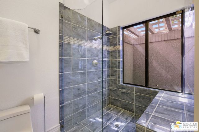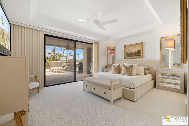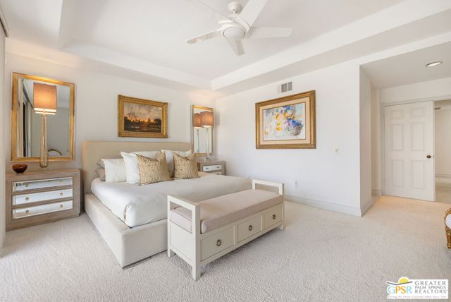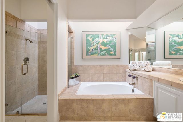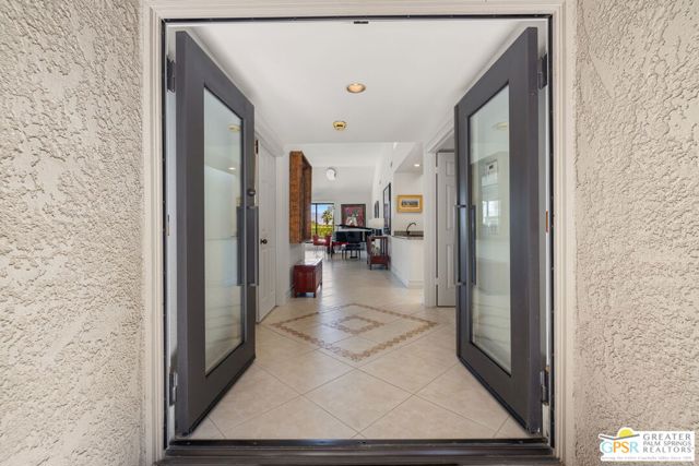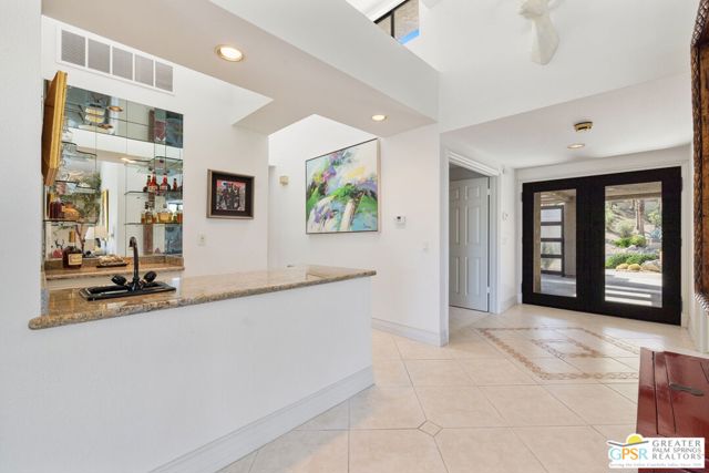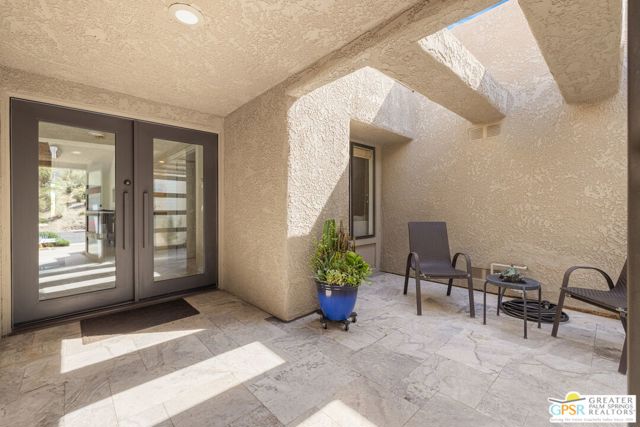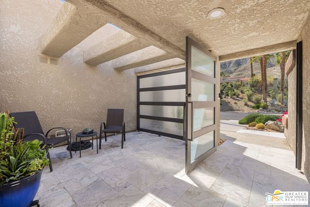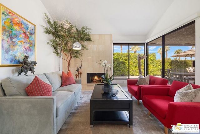 Perched above the valley floor in the private gated enclave of Mirage Cove, this 3 bedroom, 3 bath detached residence captures unobstructed mountain and valley views from a prized corner lot setting. With just 69 single-family homes, Mirage Cove offers a rare combination of privacy and on-site amenities including swimming, tennis, and pickleball - an ideal retreat for those who value both serenity and community. A private south-facing courtyard sets the stage for arrival before double doors open to a light-filled living space defined by vaulted ceilings, floor-to-ceiling glass, a gas fireplace, and a wet bar. Expansive sliders connect the living and dining areas to a covered patio and a generous backyard designed for indoor/outdoor living. The pool and in-ground spa are positioned to maximize sweeping views of the valley floor and surrounding mountains - an ideal vantage point for relaxing evenings and even the occasional sighting of Big Horn sheep across the hillside terrain. The separate kitchen features clerestory windows, granite countertops, abundant cabinetry, and a casual dining area, with direct access to the outdoor entertaining spaces. The Primary Suite enjoys mountain views, patio access, and a spa-inspired bath with dual vanities, soaking tub, walk-in shower, and walk-in closet. Junior Ensuite Two is privately positioned on the opposite side of the home with its own patio, dual vanities, soaking tub, and walk-in shower. Junior Ensuite Three also captures views and offers convenient access to a bath with shower/tub combination. Additional highlights include an inside laundry room, attached two-car garage, and rare RV parking - an exceptional feature in this setting. A private hillside retreat with scale, views, and lifestyle that is minutes from the heart of Rancho Mirage.
