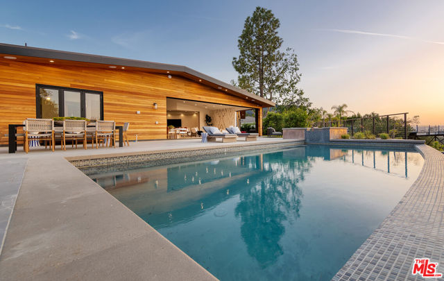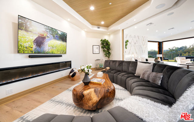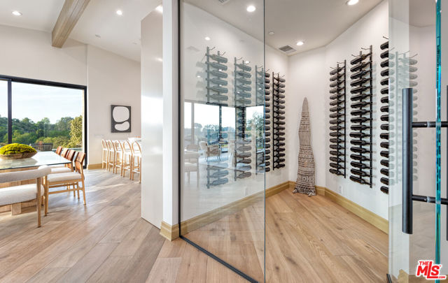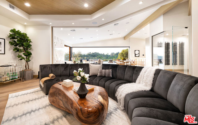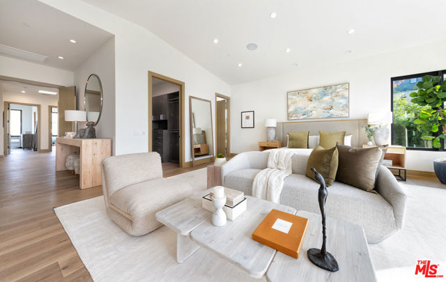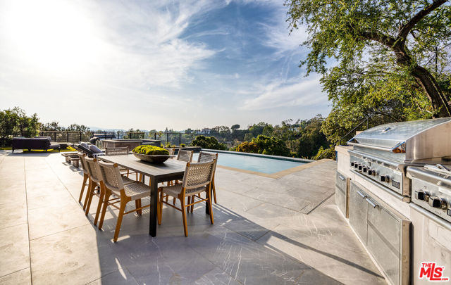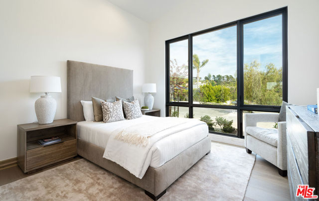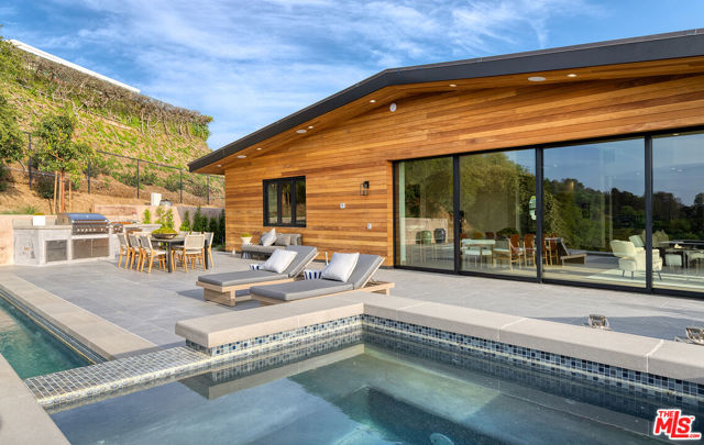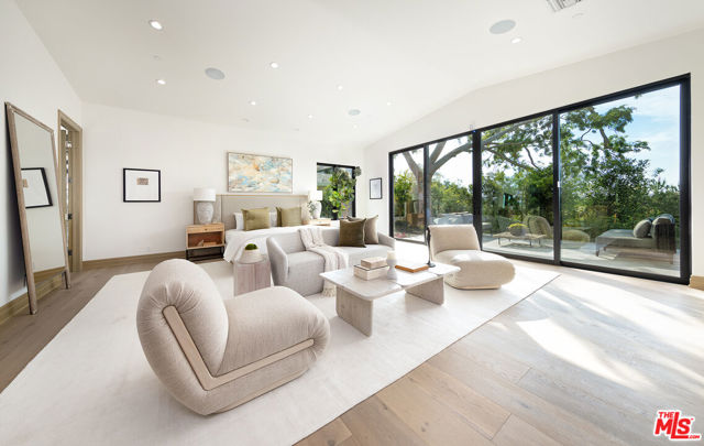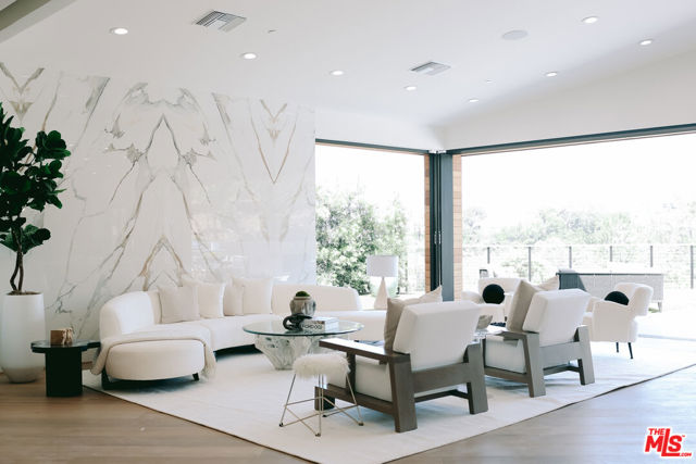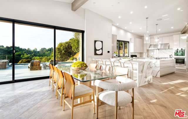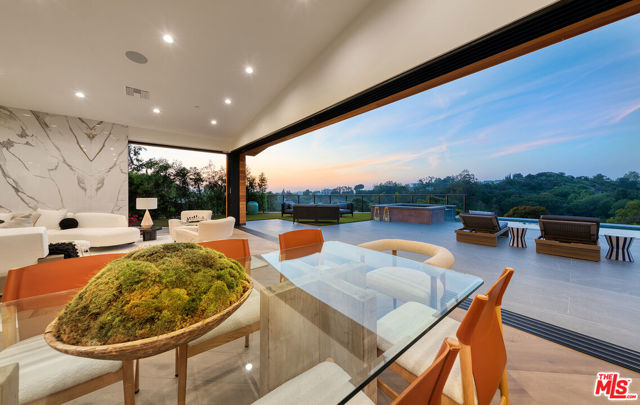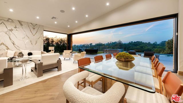 The Janice Place Estate is a brand-new single-story contemporary masterpiece in Beverly Hills 90210 post office, perfectly situated on a serene cul-de-sac one block north of the legendary Trousdale Estates and minutes from Bel Air. Set on a nearly 29,000-square-foot lot, this brand new construction residence spans 6,194 square feet with 6 en-suite bedrooms, 9 bathrooms, and a seamless open floor plan designed for quiet luxury living and world-class entertaining. Floor-to-ceiling automated glass doors dissolve the boundary between indoors and out, opening to a private backyard paradise with an infinity-edge pool, heated spa, waterfall, fire pit, and sweeping canyon views framed by mature trees and lush landscaping. The chef's kitchen features Miele appliances, dual ovens, two dishwashers, built-in espresso maker, Calacatta Borghini waterfall islands, custom cabinetry, walk-in pantry, full wet bar, and a temperature-controlled glass wine room. European hardwood floors flow throughout. The media room features a wide electric fireplace and matchbook porcelain feature wall, converting effortlessly from an open entertainment space to an intimate home theater.The grand primary suite is a private sanctuary with a pearl onyx double-sided fireplace, seating area, private patio, and dual spa-caliber bathrooms each with a soaking tub, steam shower, and walk-in closet. Five additional bedroom suites offer flexible configurations for family, guests, home office, gym, yoga studio, or au-pair quarters. Outside is an entertainer's dream with a custom barbecue station, multiple lounge areas, and a fire pit surrounded by breathtaking canyon scenery. Delivered turnkey with curated interior design and a one-of-a-kind art collection (available for purchase), Sonos Arc whole-home sound, app controlled home technology, and a comprehensive ring camera security system. For those seeking a new construction Beverly Hills PO mansion, a luxury estate near Trousdale Estates, or a private canyon-view home comparable to Bel Air's finest the Janice Place Estate is the quiet luxury escape you have been looking for.
