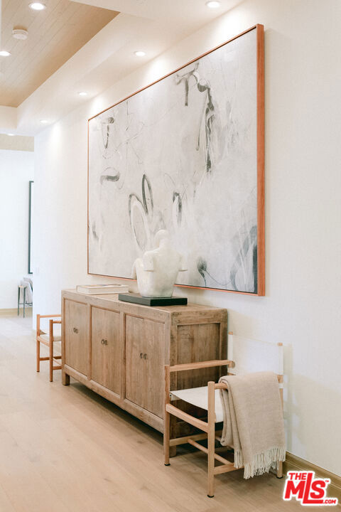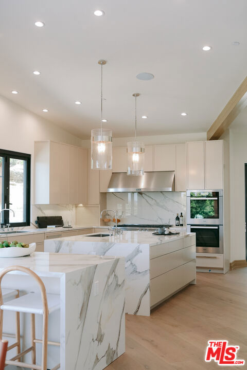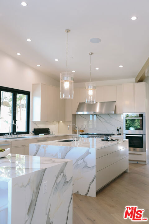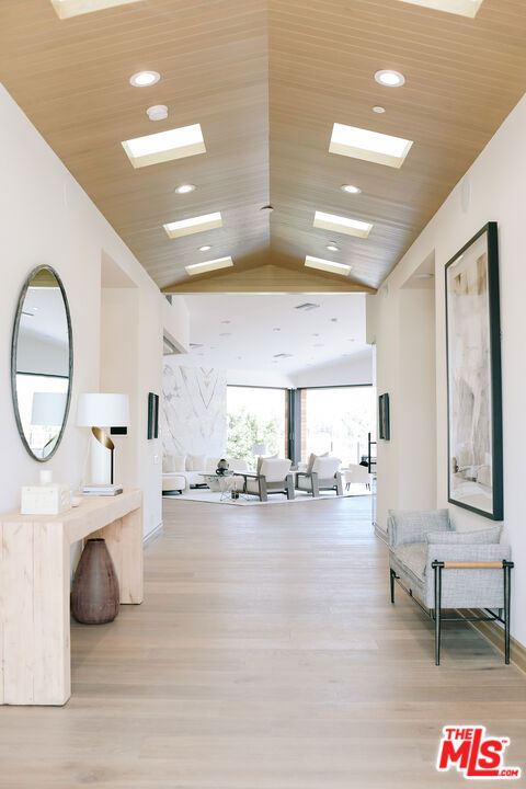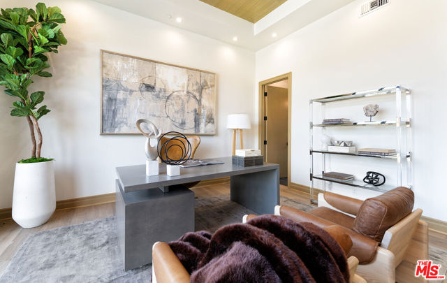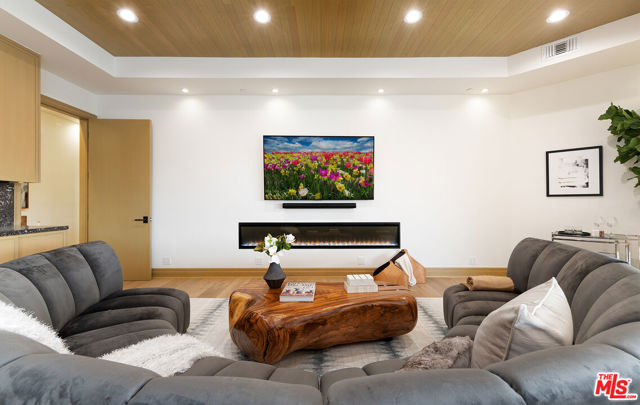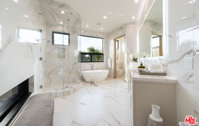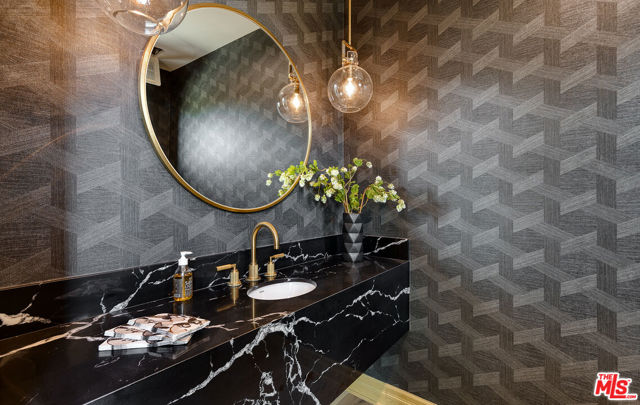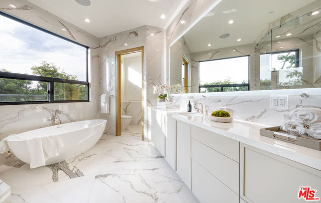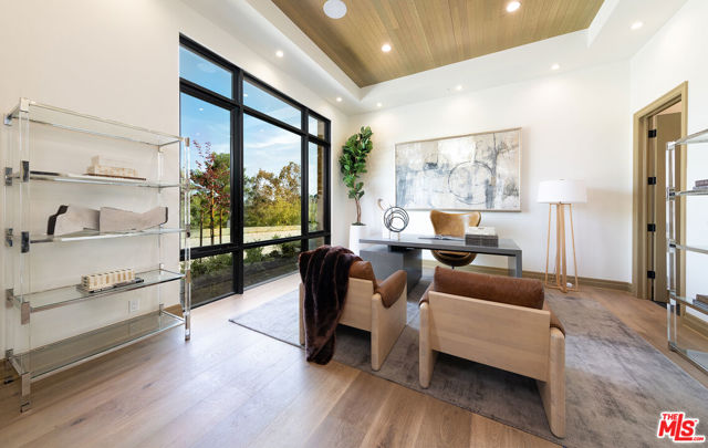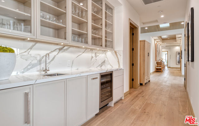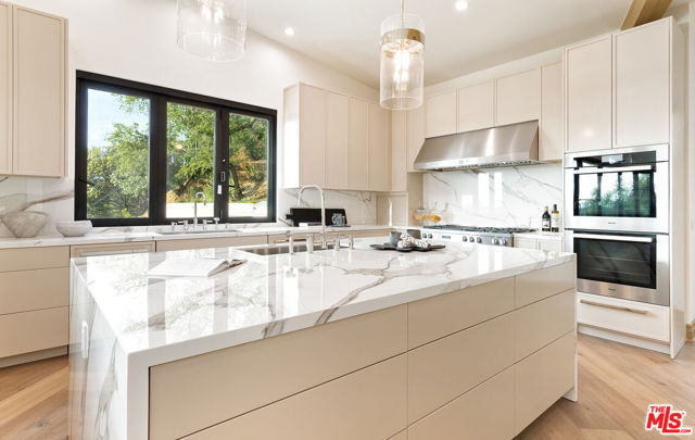 The Janice Place Estate is a brand-new single-story contemporary masterpiece in Beverly Hills 90210 post office, perfectly situated on a serene cul-de-sac one block north of the legendary Trousdale Estates and minutes from Bel Air. Set on a nearly 29,000-square-foot lot, this brand new construction residence spans 6,194 square feet with 6 en-suite bedrooms, 9 bathrooms, and a seamless open floor plan designed for quiet luxury living and world-class entertaining. Floor-to-ceiling automated glass doors dissolve the boundary between indoors and out, opening to a private backyard paradise with an infinity-edge pool, heated spa, waterfall, fire pit, and sweeping canyon views framed by mature trees and lush landscaping. The chef's kitchen features Miele appliances, dual ovens, two dishwashers, built-in espresso maker, Calacatta Borghini waterfall islands, custom cabinetry, walk-in pantry, full wet bar, and a temperature-controlled glass wine room. European hardwood floors flow throughout. The media room features a wide electric fireplace and matchbook porcelain feature wall, converting effortlessly from an open entertainment space to an intimate home theater.The grand primary suite is a private sanctuary with a pearl onyx double-sided fireplace, seating area, private patio, and dual spa-caliber bathrooms each with a soaking tub, steam shower, and walk-in closet. Five additional bedroom suites offer flexible configurations for family, guests, home office, gym, yoga studio, or au-pair quarters. Outside is an entertainer's dream with a custom barbecue station, multiple lounge areas, and a fire pit surrounded by breathtaking canyon scenery. Delivered turnkey with curated interior design and a one-of-a-kind art collection (available for purchase), Sonos Arc whole-home sound, app controlled home technology, and a comprehensive ring camera security system. For those seeking a new construction Beverly Hills PO mansion, a luxury estate near Trousdale Estates, or a private canyon-view home comparable to Bel Air's finest the Janice Place Estate is the quiet luxury escape you have been looking for.