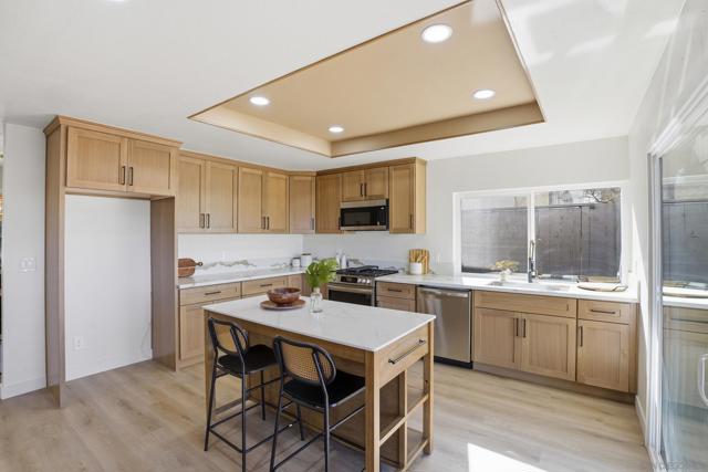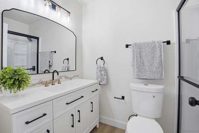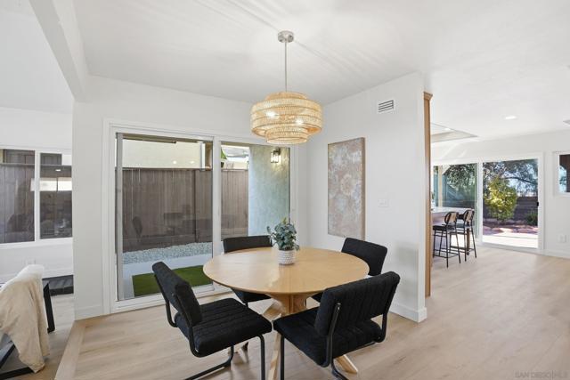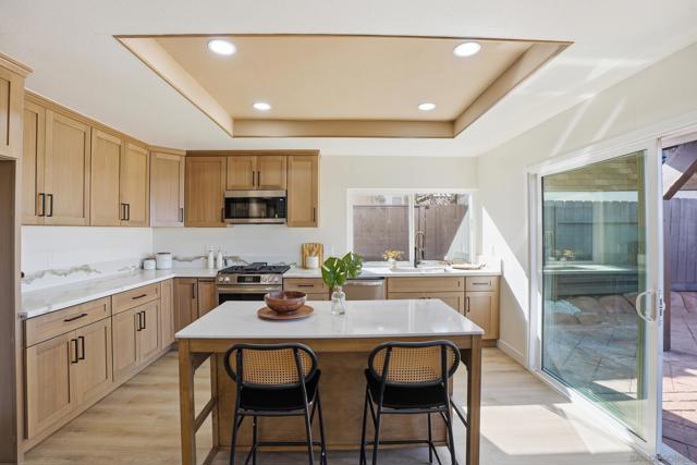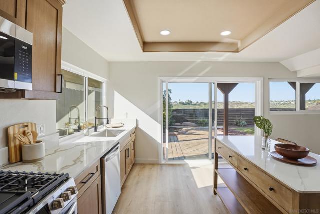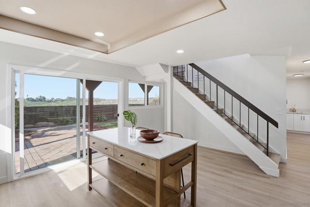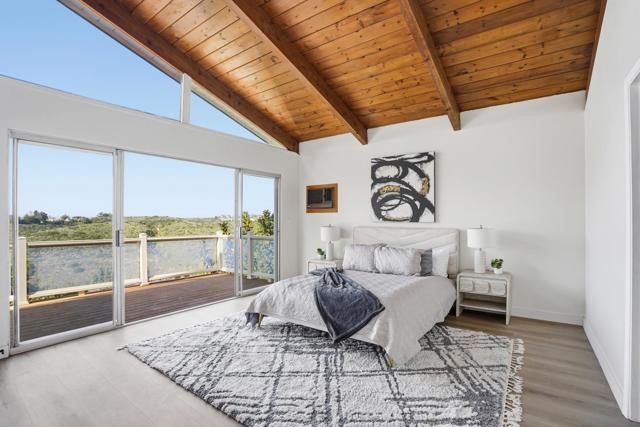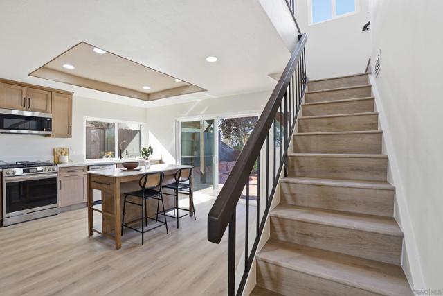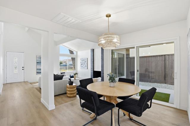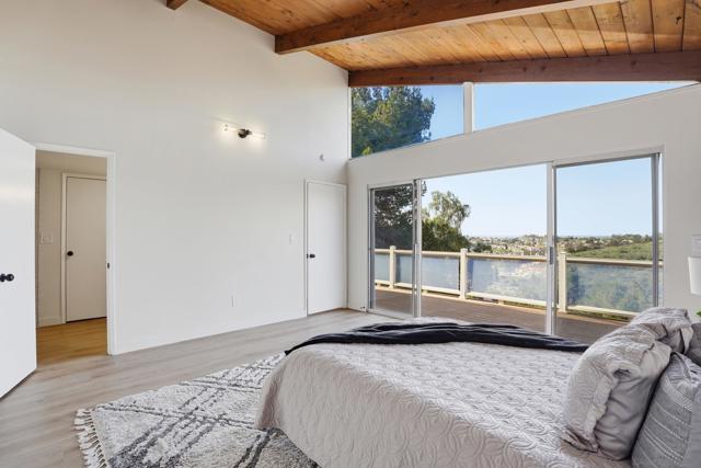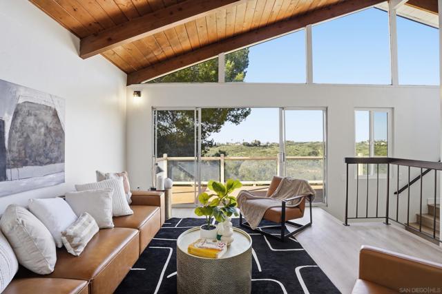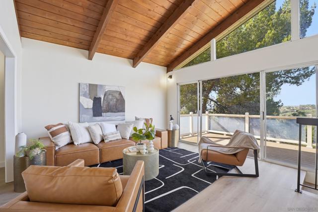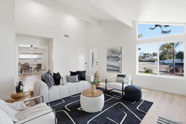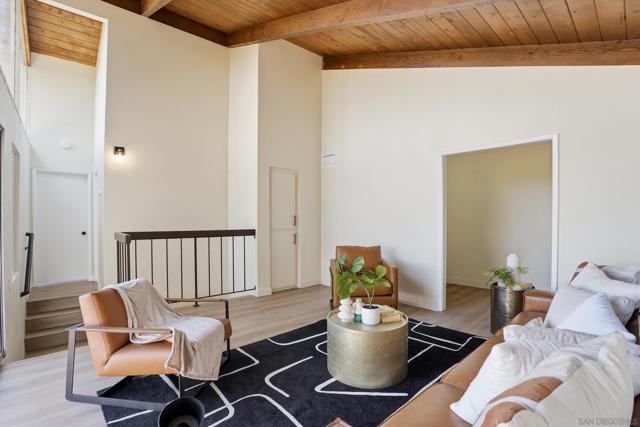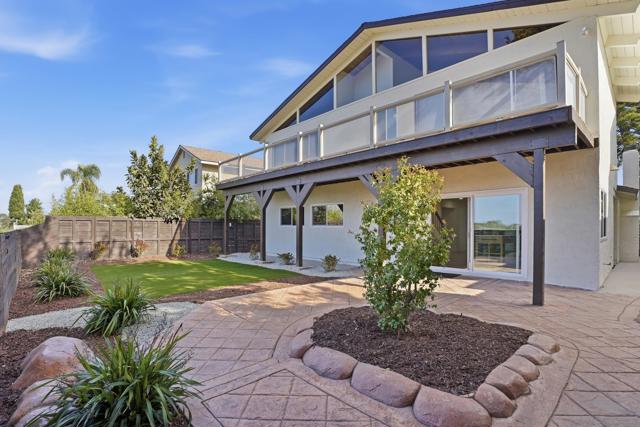 Welcome to this beautifully upgraded two-story home offering 5 bedrooms, 3 bathrooms, and 2,360 square feet of spacious living. High ceilings throughout create an open, airy feel, highlighted by stunning vaulted wood beam ceilings that add warmth and architectural character. New modern flooring and fresh interior and exterior paint give the home a clean, move-in ready finish. The spacious living room flows into a cozy dining area and a large modern kitchen featuring light oak cabinetry, new appliances, and sliding glass doors that open to the backyard- perfect for seamless indoor-outdoor living! The flexible layout includes a downstairs guest bedroom with its own full bathroom, ideal for visitors. Upstairs, the private primary suite features vaulted ceilings, spacious closet and access to an oversized balcony with elevated views, while a versatile loft offers additional space that can be customized as a lounge, workspace, or creative area. Outside, the newly landscaped backyard provides a comfortable setting for relaxing or entertaining while enjoying the views. Additional highlights include a two-car garage and a prime location just minutes from shopping plazas, schools, and convenient access to the 805 freeway!