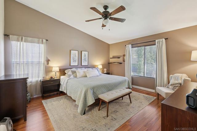 Beautiful home in the desirable Sunbow community. Designed with both comfort and functionality in mind, the thoughtfully laid-out floor plan includes a full bedroom and bathroom on the main level — ideal for guests or multigenerational living. Soaring ceilings and an open-concept design create a bright, airy feel throughout the home, complemented by beautiful tile, laminate, and engineered wood flooring. The oversized kitchen offers abundant counter space and ample cabinetry, making it perfect for both everyday living and entertaining. Upstairs, a generous loft provides flexible space for a home office, media room, or additional lounge area. The primary suite serves as a relaxing retreat, complete with a spacious bedroom and a large closet offering plenty of storage. Situated on a corner lot with a long driveway, the home also features a private backyard lined with palm trees — perfect for relaxing or hosting gatherings. Conveniently located near schools, parks, shopping, freeways, and hospitals, this home offers the ideal blend of comfort and accessibility.