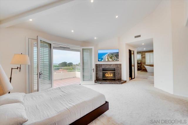 Welcome to “Brisas Del Mar” this stunning solar powered executive-style residence in the heart of Del Mar.As you step through the private front courtyard with a water fountain.You’re welcomed into a home filled with rich Onyx flooring to the elegant designer chandeliers.To your left,a spacious office—perfect for working from home or use as a downstairs guest bedroom for visitors or multi-generational living.To your right, a beautiful formal dining area with a fireplace that meets the most sophisticated of needs.The gourmet kitchen showcases an impressive center island perfect for meal prep, gathering, and entertaining—along with maple cabinetry,a side butler’s pantry and food storage.Top-tier LG appliances include a stove, microwave,dishwasher and double door refrigerator. Easy flow into the warm,inviting family room with a cozy gas fireplace and surround speakers.Walk outside to BBQ or lounge and enjoy your private heated pool and Jacuzzi with no neighbors directly behind. Upstairs, you’ll find four generous bedrooms, including a large primary suite with plenty of room to relax.The bathrooms have been updated with onyx leaf sinks, marble and stone tile floors. Walk out to your private balcony to enjoy ocean sunsets and fireworks from Del Mar Fair.HOA included community lap pools, BBQ’s and lounge aera. Whole house dual control heating and AC with soft water filter included.Luxury living at its finest Walking distance to Flower Hill Mall. Minutes to the Village of Del Mar, Race Track,restaurants,beaches, Award winning schools