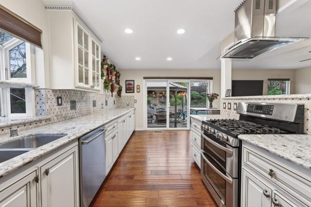 Welcome to 4110 Whangnam Pl, a stunning 1,812 sq ft ranch that perfectly blends character and modern style, located in a top-rated school district. Vaulted ceilings with exposed beams and high-end hardwood flooring create a bright, open feel. The chef's kitchen shines with granite counters, white cabinetry, and professional-grade stainless steel appliances. Three spacious bedrooms include a private primary suite, plus two beautifully updated baths. Step outside to your resort-style backyard, featuring a sparkling pool where a custom mosaic mermaid and vibrant sea-life shimmer beneath the water, creating a truly magical and eye-catching centerpiece. Enjoy the tiered stone garden, gazebo with built-in bar, and low-maintenance turf - an entertainer's dream in a prime San Jose location.