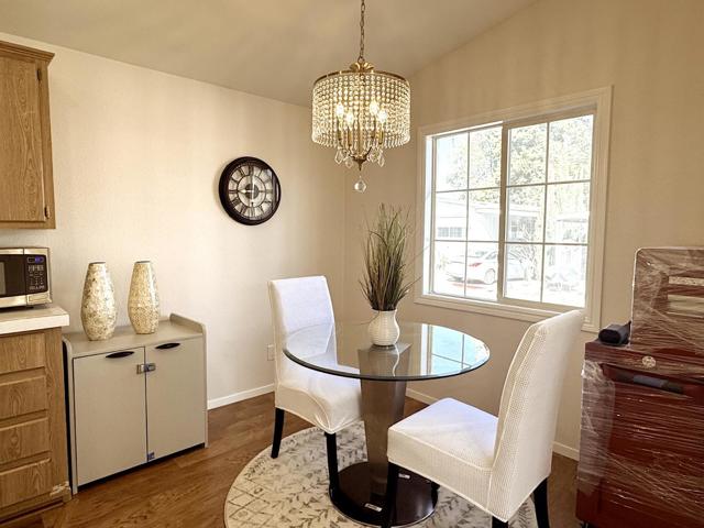 Welcome to this spacious 2-bedroom, 2-bath home in the desirable all-age community of Sun Valley Mobile. This home features a freshly painted interior and exterior, newly installed energy-efficient dual-pane windows, and recessed lighting throughout. Recent upgrades include new plumbing, a water heater, flooring, HVAC system, shingle roofing, an extended carport awning, porch decking, gutters, and siding. The bright living room boasts a vaulted ceiling, enhancing the open feel. Both bedrooms offer ample closet space and their own bathrooms. Outdoor space offers extra outdoor space ideal for BBQs or entertaining, plus a storage shed. Conveniently located near Costco, Lucky, the downtown farmers market, and with easy access to HWY 84 and I-580. Premium Outlets are just 10 minutes away, and top-rated schools are nearby. A community shuttle at the gate provides direct access to the BART station. Don't let this opportunity slip awaymake it yours today!