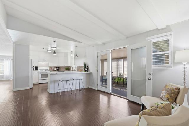 Move right in to this updated home in the highly desirable 55+ age-restricted Mountain Springs mobile home community. Be delighted with the luxurious gardens as you approach the front of this home. Open the front door to an expansive living room featuring newer laminate flooring, double pane windows throughout the home, and calming light gray paint. Meander through the living room to the dining area with tasteful lighting to entertain your guests. Next behold the bright white kitchen featuring a breakfast bar area where you can also enjoy meals. The kitchen looks out to the cozy family room and the 8'x15' bonus sunroom waiting for you to relax and spend quiet moments. The home also features two bedrooms each with their own bath. The primary bedroom features a walk-in closet, ensuite bath with a garden tub, and separate shower. Mountain Springs is situated close to the light rail station, Home Depot, grocery stores, banks, Starbucks and many restaurants. You will love living here. The home has low space rent of $1025/month.