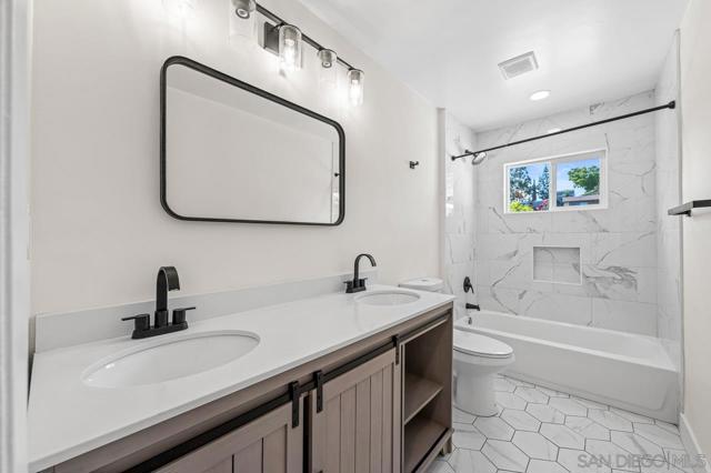Turn-key home with stunning curb appeal. Enjoy the open and spacious living room that seamlessly flows into the kitchen, creating a comfortable layout for everyday living and entertaining. Renovated in early 2022 with numerous improvements, including a newer roof, water heater, and furnace installed within the past few years. The interior has been freshly painted and the landscaping has been refreshed, giving the home a clean and inviting feel throughout. The primary bedroom features a beautifully updated attached bath with dual vanities, sleek modern black flooring, and a stylish walk-in shower. Step outside to a spacious backyard with a patio area perfect for relaxing or entertaining. Stairs lead to a raised portion of the yard that offers plenty of room for gardening, planting beds, or creating your own outdoor retreat. Ideally located near Grossmont Center with abundant shopping, dining, and restaurants, as well as Downtown La Mesa where you can enjoy the popular La Mesa Farmers Market. Convenient access to the 8 and 125 freeways, Lake Murray, local parks, and nearby schools adds to the appeal of this centrally located La Mesa home. This is a must see!