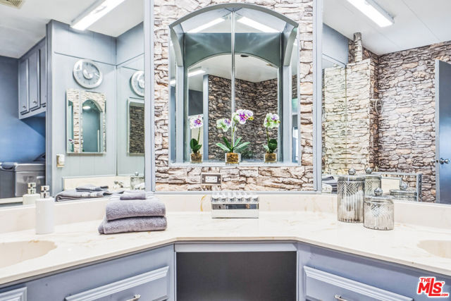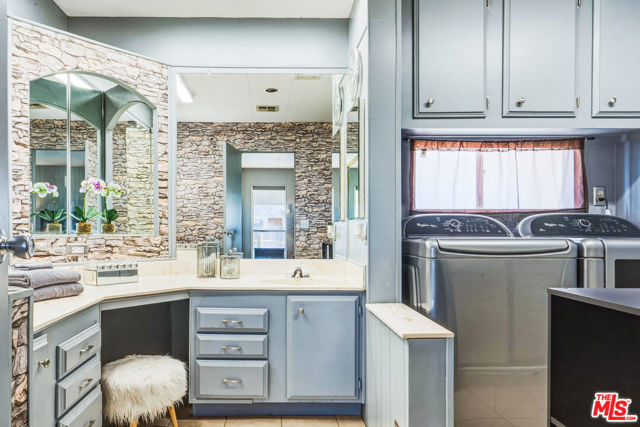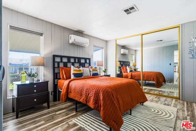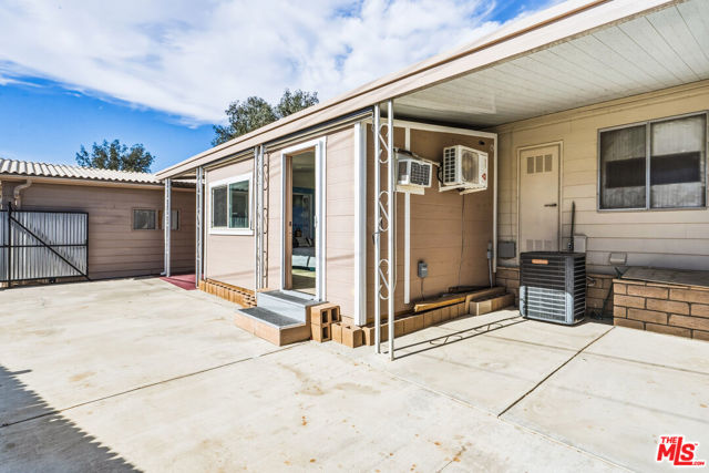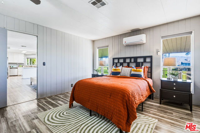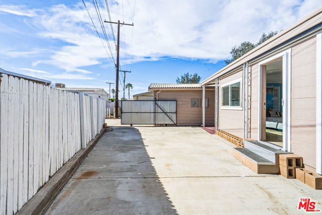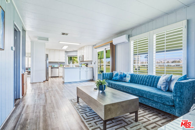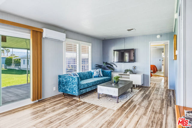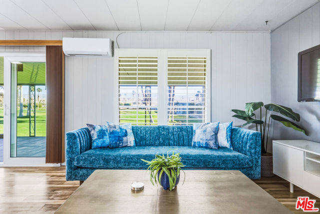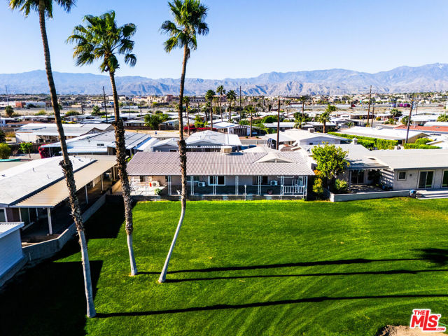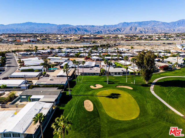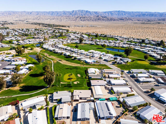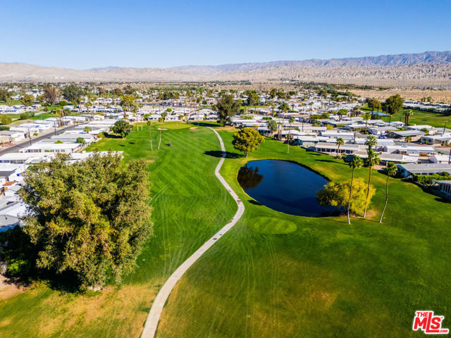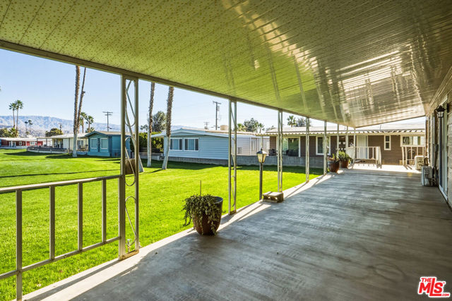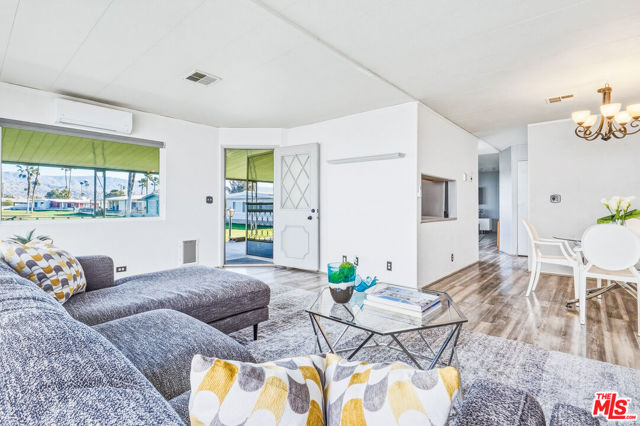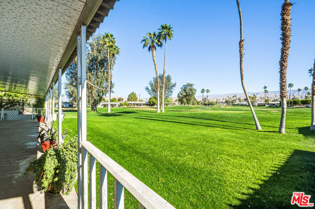 ~ RETIREMENT, READY SET GOLF. ~ Here is your chance to live on the fairway in Tri Palm Estates & Country Club, own the land, and assume a VA loan at just 4.375% interest. That rate is real, and you do not need to be a veteran to qualify; the buyer must simply meet the lender's approval requirements. This is 55+ resort living that is actually affordable. The main residence offers a spacious 2-bedroom, 2-bath layout with a generous floor plan and two separate living areas, giving you room to entertain, relax, or create distinct living zones. The kitchen features all stainless steel appliances, including a smart refrigerator, and flows easily into the living areas. A full-size Whirlpool Cabrio washer and dryer are also included. A new water heater was installed this year, and the property has a clean termite inspection on file. Attached to the home is a separate entrance bonus studio space that includes a half bath, measuring approximately 15'6" by 11'2", more or less. This area is not included in the stated square footage and was completed in a professional, workmanlike manner. It provides tremendous flexibility as a guest retreat, an office, a hobby room, a fitness studio, an additional place to rest, or your personal creative space. Positioned along the 15th hole with panoramic golf course and mountain views, the home enjoys the scenery without sitting directly in the primary line of play. You get the view and the lifestyle without feeling like you are in the landing zone. And then there is the patio. A huge covered patio stretches the full length of the home, creating a generous shaded outdoor living space with sweeping fairway and mountain views. Three manual roll-down shades are installed along the patio overhang near the front entry and studio area to help shield the afternoon sun when desired. Morning coffee, sunset cocktails, weekend gatherings, or simply watching golfers pass by, this is an everyday desert paradise. The property includes a 433A permanent foundation, no land lease because you own the land, and one of the few full two-car garages in the community, along with two additional off-street driveway spaces and extra storage. Natural gas is already connected to your grill. Interior highlights include waterproof laminate flooring, motorized blinds, updated lighting, fresh paint inside and out, two Murphy beds for flexible space use, a newer electrical panel installed in 2024 with a 10-year transferable warranty, and four energy-efficient mini-splits for year-round comfort. IID provides electricity, helping keep energy costs lower. Ring security cameras and dusk-to-dawn motion sensors add additional peace of mind. The low monthly recreation fee of $323.10 includes unlimited golf for two deeded owners on two courses, access to three heated pools, two spas, the clubhouse, tennis, pickleball, shuffleboard, the dog park, the restaurant, the bar with live music, and the library, all accessible with two electronic key cards. Conveniently located near Costco, Sam's Club, Home Depot, neighborhood grocery options, and easy I-10 access, you are also minutes from Acrisure Arena and everything the Coachella Valley has to offer. Do not let another gorgeous high desert season slip by while someone else secures this assumable rate and this fairway view. Just bring your golf bag and pickleball racquet.