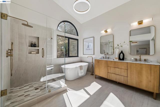 THIS IS IT! This remodeled, North facing home offers the best in California living. The open, modern floor plan features soaring vaulted ceilings, gleaming hardwood floors, designer carpeting and light fixtures, and new vinyl dual-pane windows. Enjoy the elegant living room with fireplace, and the large dining room with french doors to the rear yard. The expansive kitchen is a chef’s dream, offering quartz counters, new stainless appliances, large center island with bar seating, pantry, wet bar, double ovens, breakfast nook, and sweeping views of the rear yard. The open family room off the kitchen features a cozy fireplace and is perfect for relaxing. There is a bedroom and full bath downstairs, along with inside laundry and a oversize 3 car garage with abundant storage. Upstairs the expansive primary suite is your private retreat, with double-door entry, two-way gas burning fireplace, and retreat. The remodeled spa-like bath features a soaking tub, dual vanities, shower, and large walk-in closet. 2 large secondary bedrooms, a spacious bonus room/bedroom, and an updated hall bath complete the upstairs. The expansive backyard is your private oasis designed for entertaining, with a custom pool and spa, and outdoor fireplace. Premium location close to everything. Welcome Home!