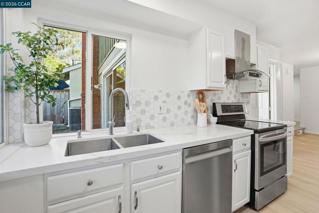 Rare 4-bedroom townhome in the highly desirable Heather Farms community of Walnut Creek. This spacious townhome offers approximately 1,915 square feet of thoughtfully designed living space, enhanced by tasteful modern updates including fresh interior paint, new downstairs flooring, designer kitchen backsplash, and stylish lighting fixtures. A private front patio welcomes you into a bright and refined interior filled with natural light. The main level features beautiful laminate flooring, a generous living room and family room, and wood burning fireplace that creates an elegant focal point-ideal for both everyday living and entertaining. Upstairs, four well-appointed bedrooms provide comfort and versatility. The expansive primary suite offers a peaceful retreat, while an additional oversized bedroom and ample closet space ensure room for family, guests, or a home office. Residents enjoy resort-style amenities including three swimming pools, a clubhouse, tennis courts, and pickleball courts. The location is unmatched, offering close proximity to Downtown Walnut Creek, John Muir Medical Center, the scenic Iron Horse Regional Trail, & convenient commuting via BART. Tour: https://www.homes.com/property/208-siskiyou-ct-walnut-creek-ca/9c3xf6hthxfhq/?dk=7q4dzdccs7htx