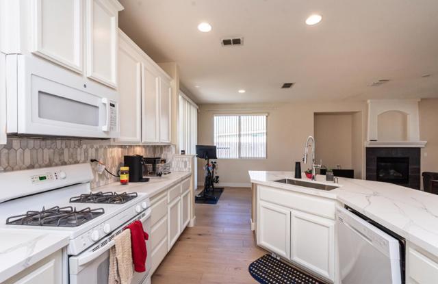 Sought after single story home on a large 6,880 SqFt lot in a partial cul-de-sac in prestigious Laguna South. Elk Grove enclave with walkability to nearby parks, trails, and schools. Top-rated schools (Castello Elementary, Johnson Middle, Franklin High). 2023 Upgrades: New copper fresh-water plumbing system, wide-plank oak wood flooring, freshly painted kitchen cabinetry, new quartz kitchen counters/sink, Brizo luxury kitchen faucet, handheld shower head, full interior paint. 2022 Upgrades: New exterior paint, beautifully landscaped backyard, new aluminum patio awning, & custom stamped concrete. Open-concept layout maximizing natural light, anchored by elevated ceilings and a chefs kitchen w/ central island which flows seamlessly into the family room. Integrated living spaces featuring a stunning fireplace, open floor plan. Private primary suite retreat offering a walk-in closet & an en-suite bathroom w/ dual vanities, a soaking tub, & a separate shower. Generously proportioned secondary bedrooms perfectly suited for guests or a dedicated home office. Private, large backyard (with room for a swimming pool) w/ low maintenance landscaping, secure fencing, & a spacious patio designed for outdoor dining. Two car garage. Proximity to local shopping, dining, Highway 99, & Interstate 5.