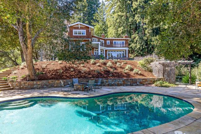 Stunning views of Stanford, San Francisco Bay, and the East Bay, just 10 minutes from downtown Woodside and 4 minutes to Alices Restaurant. Custom-built in 2004 on 1.4 acres with INCREDIBLE QUALITY AND SEISMIC INTEGRITY, this home exudes quality features including walnut floors, 12-foot ceilings, and fireplaces in the living and dining rooms. The large kitchen features Carrara marble and zinc countertops. Every bedroom and main living area opens to wraparound decks with sweeping views. Dedicated office for remote work, and a large 2-car garage. Level yard for entertaining, with room for pickle ball court, plus a sunny pool area. Direct walking distance access to scenic hiking on Mid-Pen Open Space trails. Convenient door-to-door bus to top-rated Portola Valley schools.