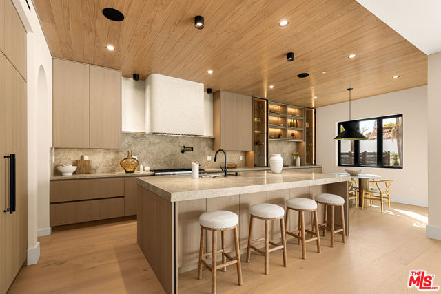 Newly built and impeccably designed, this stunning five bedroom, 5.5 bath residence in the heart of Pico-Robertson offers the perfect blend of luxury, comfort, and convenience. Soaring ceilings and thoughtfully curated interiors create a bright, open atmosphere, while unparalleled finishes and meticulous craftsmanship elevate every space. The home features an elegant layout, ideal for both everyday living and entertaining, including a spacious living area, formal dining space, a chef's kitchen that opens up to the family room, and a charming breakfast nook overlooking the backyard. The spectacular primary suite serves as a private retreat, complete with a balcony, expansive walk-in closet, and an extravagant spa-inspired bathroom. Step outside to a generous backyard designed for relaxation and entertaining, featuring a heated pool & spa, built-in BBQ, spacious grass area, and several perimeter trees for added privacy. Additional highlights include a two-car garage, smart home features, and gas powered appliances. Centrally located in the desirable Pico-Robertson neighborhood, this home offers easy access to beaches, Century City, and Beverly Hills, along with close proximity to places of worship, top dining destinations, and premier retail. A rare opportunity to own a luxurious home in one of LA's most sought-after neighborhoods.
