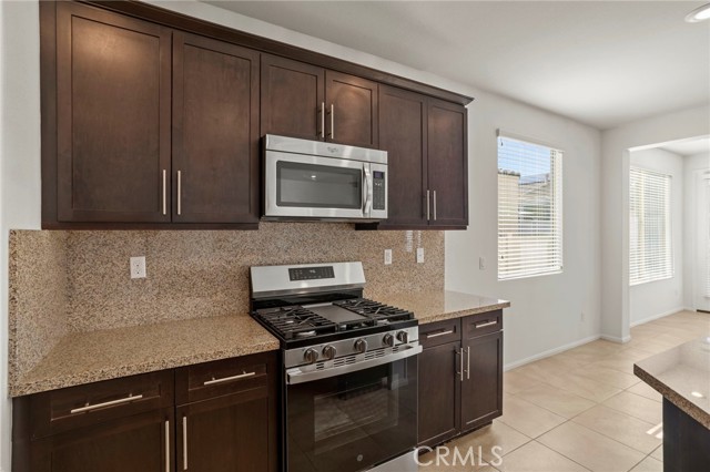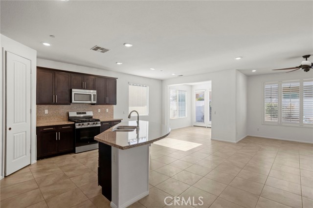 Welcome to Solera at Apple Valley, one of the High Desert’s most desirable 55+ communities where comfort, convenience, and resort-style living come together. This beautifully maintained single-story home offers 2 bedrooms, 2 bathrooms, and a versatile flex space perfect for a home office, hobby room, or den. The home has been recently painted inside and features a bright open-concept layout connecting the living, dining, and kitchen areas—ideal for both everyday living and entertaining. The spacious kitchen is designed for gathering, featuring rich espresso cabinetry, brown-speckled countertops, a large center island with seating for four and new stainless steel stove and dishwasher. The primary suite offers a peaceful retreat with a spacious bathroom complete with a large soaking tub, dual-sink vanity, and separate walk-in shower. A second bedroom and bathroom are across the home and provide comfortable space for guests. Enjoy low-maintenance outdoor living with drought-tolerant front landscaping and a beautifully finished backyard featuring a large concrete patio and artificial turf, perfect for relaxing or entertaining. Additional highlights include direct access to a 2-car garage and indoor laundry room. Residents of Solera enjoy access to outstanding amenities including the Aspen Clubhouse, pool, spa, tennis courts, fitness center, golf course access and a vibrant calendar of social activities, making it easy to stay active and connected. Experience the ease of low-maintenance living in a community designed for lifestyle and comfort.