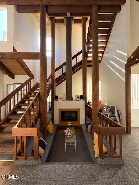 Ground floor, overlooking pool and spa. Kitchen, living room, and one bath are downstairs. Two bedrooms and bath are upstairs. New dishwasher in upgraded kitchen.Private laundry at the home.Large concrete courtyard directly in front of unit.Walk or bike to beach via footbridge or Palm Avenue. Bike or walk downtown via 8th St.Free use of clubhouse 9 to 3 M-F, ping pong, pool 4th floor view lookout, happy hour ready.No short term rentals, HOA includes water and trash. 2 parking spaces, covered parking available. Price is FIRM. Appointment with broker. Low maintenance beach area living.