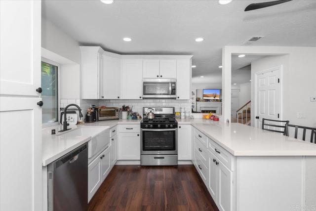 No HOA fees, No Mello-Roos, this twinhome is located on a cul-de-sac street. The kitchen is beautifully remodeled, reconfigured for improved flow and function. It features white shaker-style cabinetry, a farmhouse sink, white/grey countertops and much more to love. This floor plan features all bedrooms upstairs and a large dining area just off the kitchen. The lower level has dual-pane replacement windows and sliding dual-pane patio doors, laminate wood flooring, and built-ins along the fireplace wall in the living room. Enjoy the spacious backyard, ready for your imagination and personal touch. It is only minutes away from distinguished schools, close to Plaza Carmel Shopping Center and One Paseo.