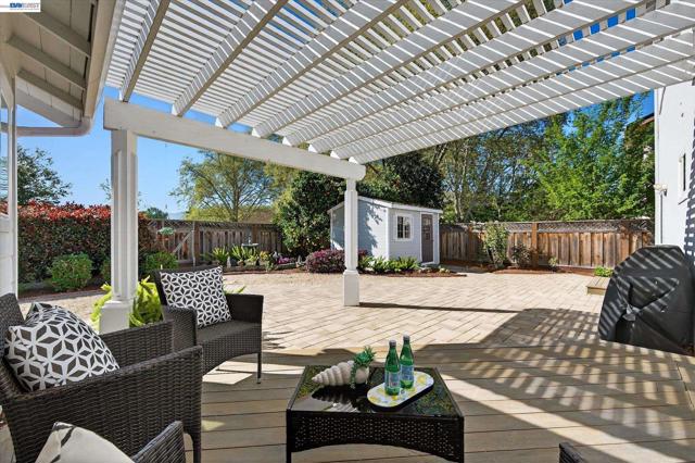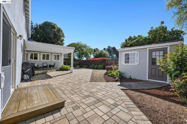 Charming two-story Pleasanton home right next to Muirwood Community Park with 5 bedrooms and 3 bathrooms, including a private main-floor bedroom for guests or extended stay. A newer roof installed in 2019 adds valuable peace of mind. Vaulted ceilings and a brick fireplace warm the living room, which flows into the dining area and bright family room. Hardwood floors run throughout. The kitchen features granite countertops, a large island with gas range, stainless steel appliances, built-in cabinetry, and open storage. Upstairs, the primary suite offers his and her closets and an en-suite, while three bedrooms share a bath and a convenient hallway laundry chute. Step outside to a backyard made for relaxing and entertaining, with two wooden decks, a paver patio, a 10 x 12 shed for storage, citrus trees, and side yard access for an RV or boat. A backyard gate opens directly to Muirwood Community Park near the popular pickleball and tennis courts. Morning coffee, weekend barbecues, or summer evenings feel extra special here. Enjoy nearby parks, shopping, dining, and easy access to I-680 and I-580 while soaking in all that Pleasanton has to offer. Broker's Tour Fri, Mar 27, 10:30-1p | Open House Sat & Sun, Mar 28-29, 1-4p
