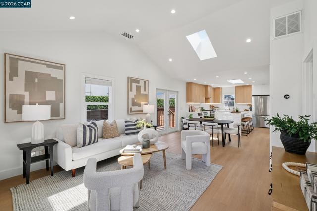 This stunning Berkeley bungalow in the heart of the city has been thoughtfully taken down to the studs and completely reimagined, blending a strong, well-built structure with beautifully curated modern designer upgrades throughout. Designed for modern comfort, the home features new insulation, updated plumbing and electrical systems, and brand-new central heating and air conditioning. A charming layout welcomes you with a dynamic roofline and soaring ceilings that create a bright, open, and inviting atmosphere. The thoughtfully designed floor plan offers two bedrooms and two bathrooms, along with two outdoor deck spaces and a sun-drenched backyard, ideal for embracing Berkeley’s indoor-outdoor lifestyle. At the heart of the home, the skylit kitchen serves as a true chef’s retreat, showcasing sleek two-tone European-style cabinetry with warm wood accents, a striking waterfall quartz island, and under-cabinet lighting that enhances both function and style. Ideally situated in a phenomenal central location near San Pablo Park, Berkeley Bowl, BART, and major highways, offering easy access to shopping, recreation, commuting, and everyday conveniences.