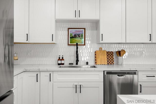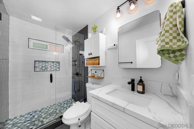 Owned solar and beautifully remodeled in the heart of La Mesa. This light filled home offers three bedrooms PLUS an optional fourth bedroom/den, along with a full size dedicated laundry room which is rarely found in homes of this size. The open concept layout creates an inviting flow through the living and dining areas into a stunning kitchen featuring quartz countertops, designer tile accents, and all new stainless steel appliances. The property is designed for both privacy and flexibility with an automatic gate surrounding the front yard and driveway, creating a private entry to the home. Outside you will also find a separate exterior area currently set up as a private gym space, offering additional versatility for a home office, workout room, or creative studio. The expansive backyard provides endless potential with plenty of room to entertain, add a pool, or add and ADU. Ideally located close to schools, shopping, and easy freeway access, this beautifully updated La Mesa home offers comfort, functionality, and modern upgrades throughout. A must see.