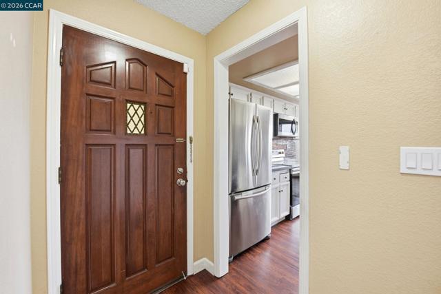Located in the Hayward hills, this Vista Del Plaza two bedroom, two bathroom residence offers privacy, convenience, and thoughtful modern updates. The home features an updated kitchen with custom countertops, designer backsplash, and contemporary finishes, along with refreshed bathrooms that give the space a clean, modern feel. The living area includes a wood-burning fireplace, built-in dry bar, and vaulted ceilings creating a comfortable setting for everyday living and entertaining. The primary bedroom offers a walk-in closet, while a two-car tandem garage and ample guest parking add practical value. Residents enjoy amenities such as a pool, spa, fitness center, clubhouse, and nearby dog parks, with easy access to downtown Hayward, major freeways, and BART, making this hillside home both convenient and well connected.