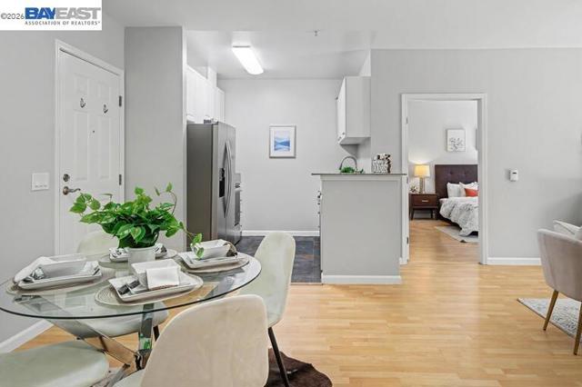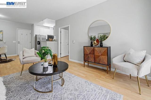 Welcome to this beautifully refreshed 2-bedroom, 2-bath condo in a desirable gated community in San Mateo with access to top-rated schools. This move-in-ready home features high ceilings and tile flooring that create a bright and open living space. The updated gourmet kitchen includes brand-new appliances—refrigerator, stove, microwave, and dishwasher—perfect for everyday living and entertaining. An adjoining dining area provides a comfortable space for meals and gatherings. The spacious primary suite features a mirrored closet and a private en-suite bath with a shower-over-tub combination. The second bedroom and full bathroom offer flexibility for guests, family, or a home office. Recent upgrades include fresh interior paint, new lighting, mirrors, and updated electrical outlets throughout. The home also includes the convenience of an in-unit washer and dryer. Residents enjoy a beautifully landscaped, oversized courtyard—an ideal place to relax and unwind. The gated community also offers secure basement garages for parking. HOA covers garbage, water, and common area maintenance. Conveniently located near shopping, dining, parks, and major commuter routes.