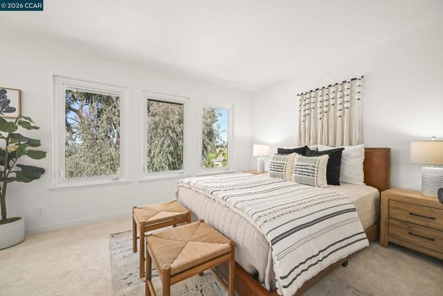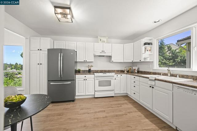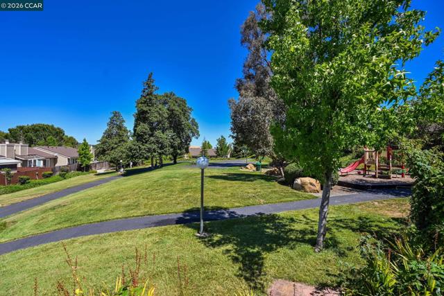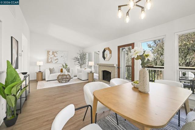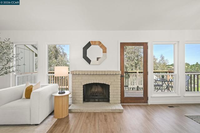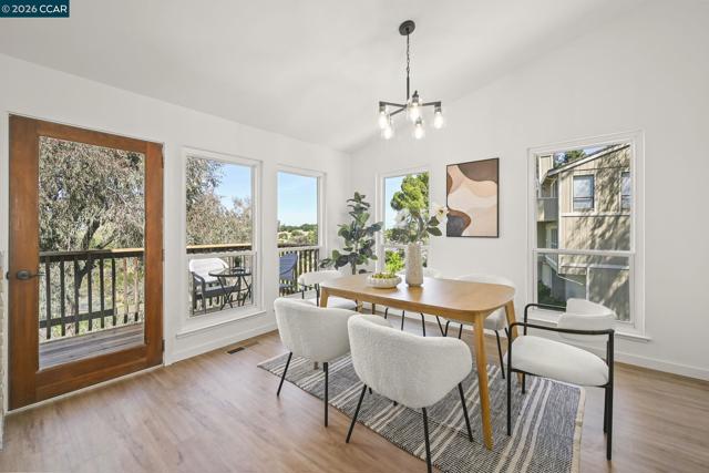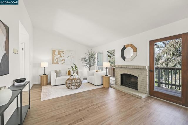 Welcome home to 523 Thistle Circle a Beautiful Townhome in the Heather Hills community of Martinez. Enjoy scenic rolling hills in this stylish updated end unit with no rear neighbors. Featuring 3 beds, 2.5 baths, and approximately 1,430 sq ft of living space with bright open floor plan with gracious living area with floor to ceiling windows and a comfortable dining area ready to entertaining. The inviting living room showcases vaulted ceilings, a cozy fireplace, and a newer balcony with great views! Recent updates include fresh interior paint, newer luxury vinyl plank flooring, new carpet floors downstairs, HVAC/ central heating and air, dual-pane windows, newer decks, and a detached two-car garage. The front patio is ideal for quiet mornings, weekend BBQs, or creating your own garden retreat. Conveniently located near parks, hiking trails, shopping, dining, and easy access to HWY 4/680/24, this home offers both comfort and accessibility. HOA amenities including a community clubhouse, pool, playground.