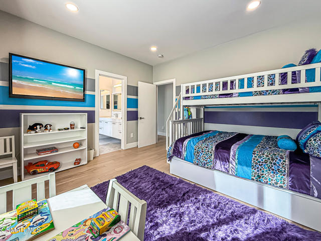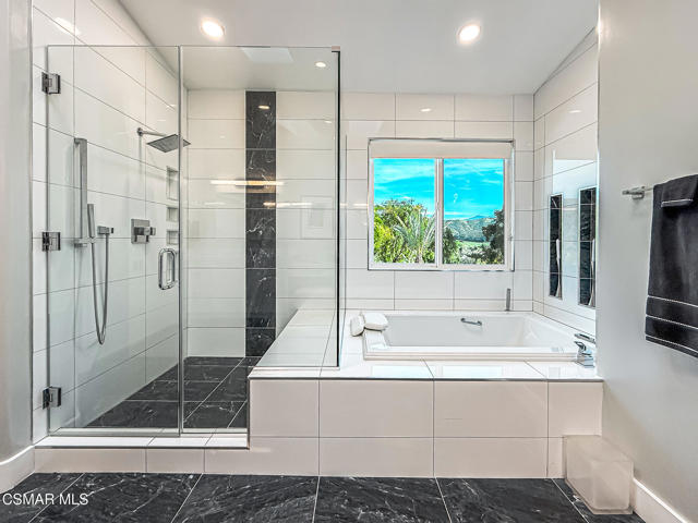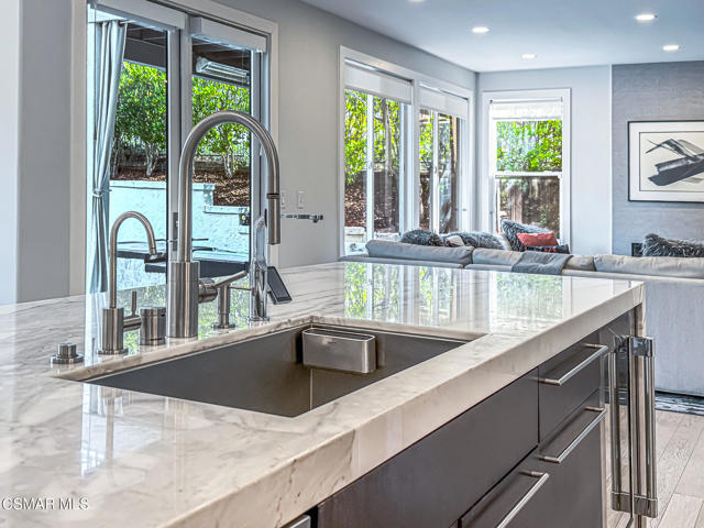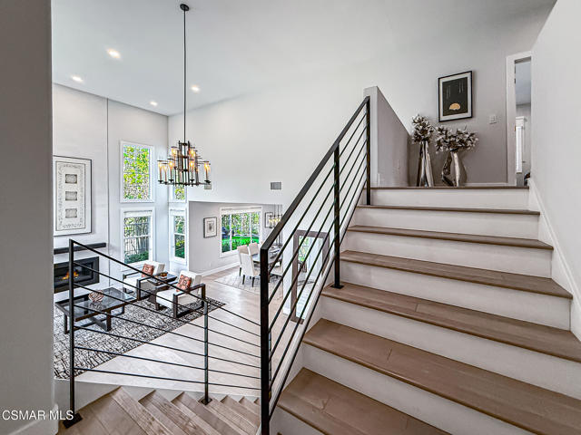 A rare opportunity to own a truly exceptional home. Nestled in the hills of Calabasas within the sought-after gated community of Calabasas View, this beautifully reimagined residence sits on an isolated lot on a quiet cul-de-sac and perfectly captures the essence of refined California living. Blending sophisticated interiors with effortless indoor-outdoor flow, the home spans 3,602 square feet on an expansive 10,141 square foot lot with incredible views of the Santa Monica Mountains. Designed for both grand entertaining and comfortable everyday living, the open-concept floor plan features four bedrooms, five bathrooms, and an open office area. A dramatic 20-foot two-story foyer creates a striking first impression, welcoming you into light-filled living spaces with a sense of openness and elegance. At the heart of the home, the gourmet kitchen is appointed with a stunning marble island and backsplash, professional-grade appliances, and a Chanson under-counter water ionizer. The kitchen flows seamlessly into the inviting family room, creating a warm yet sophisticated gathering space. Formal living and dining rooms offer elegant settings for hosting, while two fireplaces, located in the living room and family room, add warmth and timeless charm. A convenient downstairs en-suite bedroom provides an ideal retreat for guests or multigenerational living. Upstairs, the luxurious primary suite serves as a private sanctuary, offering beautiful views from every window, a spa-inspired bathroom, and a spacious walk-in closet. Enjoy peaceful mornings or spectacular sunsets from the private primary balcony. Two additional upstairs en-suite bedrooms are generously sized and versatile. Originally designed as a five-bedroom home, two upstairs bedrooms have been combined into a Pilates studio/gym and can easily be converted back if desired. The private backyard is a true entertainer's oasis, designed for resort-style living. Enjoy the updated sparkling pool and spa, a cozy firepit, outdoor kitchenette, multiple lounging areas, and a four-hole putting green, creating the perfect setting for relaxation and gatherings with family and friends. An attached three-car garage provides added convenience and security. Additional highlights include white oak flooring, Sonos sound system, ADT security system, Lorex security cameras, a fully owned Sunrun solar system, and a Chanson whole-house filtration and water softening system. Ideally situated within the desired Las Virgenes Unified School District, this home offers exceptional convenience with easy access to the 101 Freeway. Enjoy being just fifteen minutes from iconic Malibu beaches, a short distance to Erewhon Market, and only minutes from premier shopping and dining at The Commons at Calabasas, Westlake Village Promenade, and the Valley destinations.