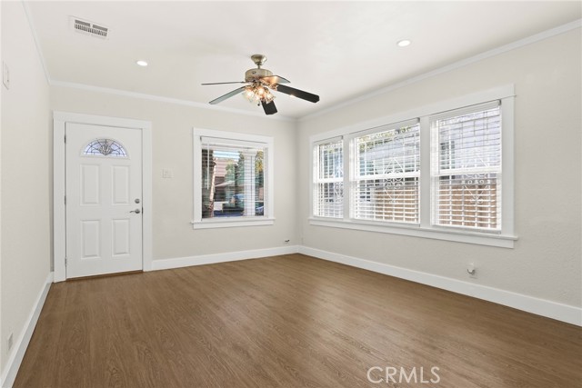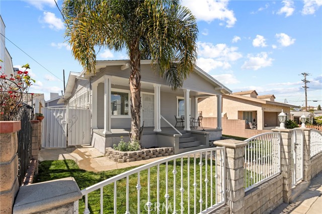 Discover this updated single-story Craftsman in the heart of San Pedro’s waterfront transformation. Sitting on a 4,502 sq. ft. lot, the home perfectly balances original character with modern, high-efficiency upgrades. A deep front porch leads into an open-concept interior where the living, dining, and kitchen areas flow seamlessly. The kitchen features quartz countertops and stainless steel appliances, while newer double-pane windows and recessed lighting provide bright, energy-efficient living spaces. A convenient laundry room is located between the kitchen and the backyard door, adding everyday functionality to the layout. The property’s standout features are its parking and expansion potential. A detached 1-car garage with rear alley access and a massive sliding gate opens to additional secured parking, a rare find for RVs, boats, or multiple vehicles. The lot also offers potential for an ADU conversion (Buyer to verify). Additional highlights include solar panels paid off at closing, central heating and air conditioning, copper plumbing, and a new vinyl side fence. Fresh interior and exterior paint, newly designed front landscaping, and a producing orange tree make the home truly turn-key. Minutes from the West Harbor development, a soon-to-be premier dining and entertainment hub in San Pedro, and close to the 110 Freeway, Point Fermin, and nearby beaches, this home combines modern comfort with rare parking and incredible growth potential. With single-family homes at this price point becoming rare in the South Bay, this is an incredible opportunity. Don’t miss out!