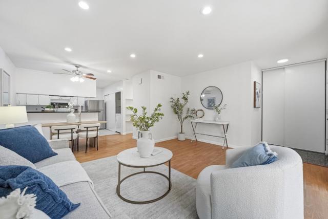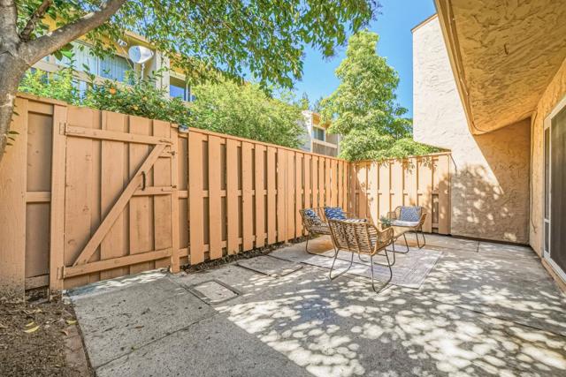 Welcome to this rare single-level townhome with 2 bedrooms and 1 bathroom in sought-after Sunnyvale. The home features a large fenced front yard offering very good privacy. Upon entry is an inviting living room filled with ample natural light. A sliding door opens to the front yard, creating great indoor-outdoor living. The connected dining area includes a ceiling fan/light and flows into the kitchen. The gourmet kitchen offers granite countertops, stainless steel appliances, and ample white cabinetry. Nearby is a laundry area with washer and dryer for added convenience. Along the hallway are two bedrooms with large windows and a hallway bathroom with a shower over tub. Enjoy the community pool and clubhouse. Conveniently located near parks including Serra Park and Ortega Park. Just 8 minutes to Apple Park, with easy access to Highways 85 and 280 and a short commute to major tech companies. Great schools. Do not miss this great opportunity!
