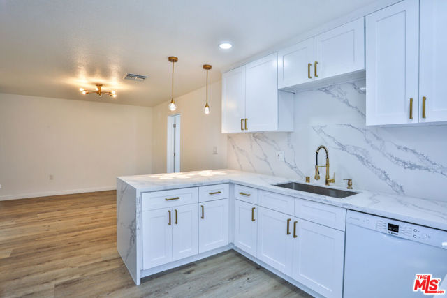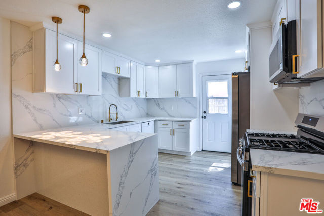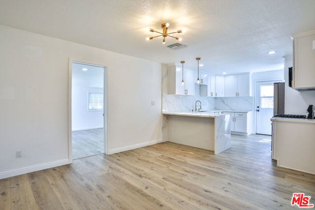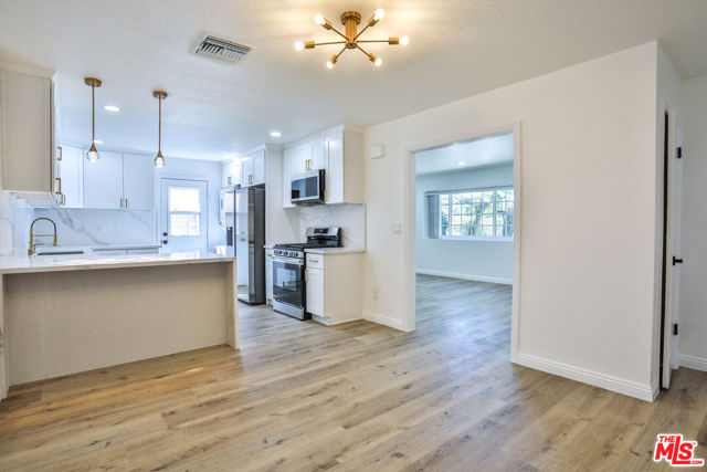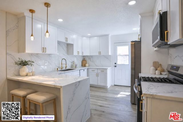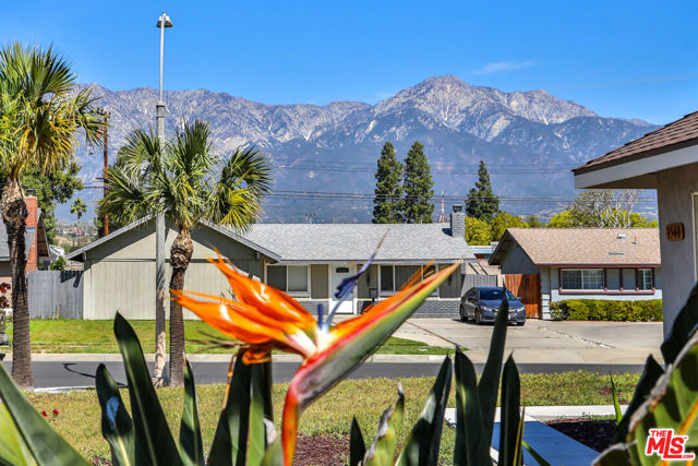 Completely reimagined and thoughtfully updated, this turn-key home blends elevated design with effortless everyday living. The open-concept layout is filled with natural light, creating a bright and inviting atmosphere that flows seamlessly from the living area into the kitchen and out to the backyard through sliding glass doors offering a true indoor-outdoor connection. From the home, enjoy clear sightlines to the nearby San Gabriel Mountains, adding a scenic natural backdrop that enhances the overall setting. At the center of the home, the fully renovated kitchen is both striking and functional, featuring custom shaker cabinetry, waterfall-edge countertops, and a full-height slab backsplash, all complemented by warm brass finishes. The peninsula provides additional seating and workspace, making it ideal for both daily living and entertaining. Wide-plank flooring runs throughout, creating a warm and cohesive feel, while each bedroom offers a comfortable retreat with flexibility for guests, office, or growing household needs. The backyard presents a blank canvas ready to be transformed into the outdoor space you envision, whether for entertaining, relaxing, or future expansion, perfectly positioned to take advantage of the surrounding mountain views. Conveniently located near major freeways, Ontario International Airport, shopping, dining, and entertainment, this home offers the perfect balance of style, functionality, and accessibility.