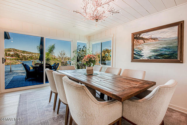 GILLIGAN'S ISLANDA rare and remarkable offering--this is one of the last remaining lakefront estates along the coveted shores of Lake Sherwood, set behind the prestige of a guard-gated enclave. Celebrity-owned, the residence captures sweeping lake and mountain vistas while delivering an elevated waterfront lifestyle defined by serenity and sophistication.Recently reimagined with exceptional taste, this four-bedroom, four-bath home is a showcase of refined design, where every detail has been thoughtfully curated. The selection of tile and materials is nothing short of breathtaking--an artful blend of texture, tone, and craftsmanship that elevates each space with quiet luxury. The gourmet kitchen is both striking and functional, adorned with exquisite quartz stone surfaces, premium appliances, and bespoke finishes that reflect a true sense of elegance.The expansive great room is bathed in natural light, featuring dramatic beamed ceilings, a wood-burning fireplace, and walls of glass that frame the ever-changing beauty of the lake and mountains beyond--creating a seamless dialogue between indoor comfort and the natural world.The primary suite is a beautifully appointed sanctuary, where refined finishes and a tranquil ambiance reflect the home's thoughtful design and understated elegance.Outdoor living unfolds effortlessly with a spectacular wraparound deck that appears to float above the water--an extraordinary setting for both intimate moments and grand entertaining. A delightful pool with a view offers a serene, sun-drenched retreat, perfectly positioned to take in the shimmering lake below, while the adjacent barbecue area creates an inviting space for open-air dining and effortless entertaining.A private boat dock invites days spent boating, kayaking, paddle boarding, fishing, or simply enjoying the rhythm of the water. Above it all, a secluded upper-level bedroom suite--accessed via a private staircase--offers a peaceful retreat with commanding panoramic views.Adding to the home's distinctive character is a charming turret-style belvedere--an architectural jewel that rises like a quiet outpost above the lake. This intimate vantage point offers a truly cinematic perspective, where water, sky, and mountains converge, creating a space that feels both inspiring and serenely removed.A dedicated office with custom built-ins provides a refined space for work or study, completing the home's thoughtful layout.Set on approximately a quarter-acre of wooded grounds within the exclusive Lake Sherwood community, this residence offers a rare blend of privacy, natural beauty, and timeless elegance--just moments from Sherwood Country Club, scenic trails, and the everyday conveniences of Westlake Village.