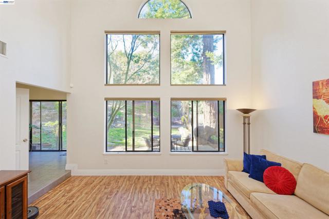 Tucked into a desirable cul-de-sac corner in the Oakland Hills, 4903 Stoneridge Ct offers a unique blend of privacy, space, and architectural character. Set on a generous lot just shy of a quarter acre, this thoughtfully designed residence features approximately 2,190 square feet with 3 bedrooms and 2.5 bathrooms. Upon entry, a defined foyer creates a sense of arrival before opening into a dramatic living space highlighted by soaring ceilings, a stunning staircase, and an abundance of natural light throughout. The kitchen is equipped with stainless-steel appliances and flows seamlessly into the main living areas, ideal for both everyday living and entertaining. Surrounded by mature trees and hillside serenity, yet conveniently located near parks, shopping, and major Bay Area commuter routes, this home offers both tranquility and accessibility.