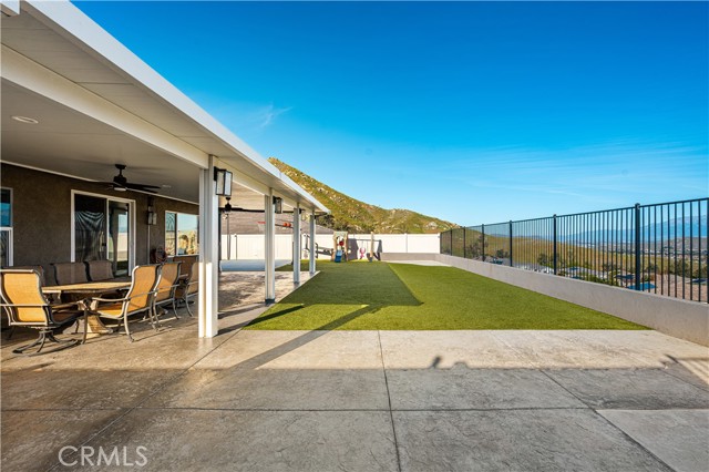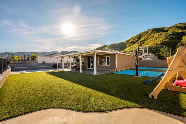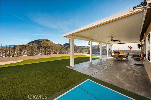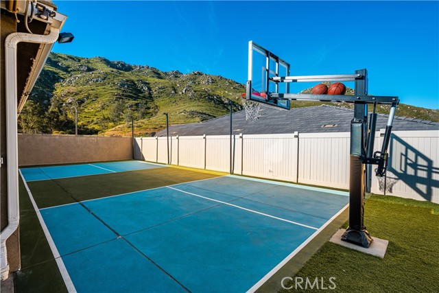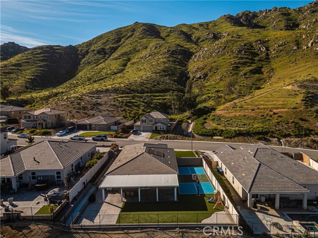 Professional photos coming soon: Welcome to 20996 Mountain Gate Drive, a masterfully designed single level residence built in 2020 that perfectly blends modern efficiency with an indoor outdoor lifestyle. Located in the highly desired Spring Mountain Ranch community in Riverside, this 4 bedroom home is framed by majestic mountain vistas from both the front and the rear. Step inside to discover an airy, open concept floor plan featuring soaring 9 foot ceilings and sleek recessed lighting throughout. The heart of the home is the expansive Great Room, anchored by a dramatic floor to ceiling stack stone surround and a high efficiency electric fireplace. This space flows seamlessly into the backyard, making it an entertainer’s dream. The thoughtful layout provides maximum privacy, with the primary en suite tucked away at the rear of the home. This private retreat features a spacious walk in closet and a remodeled bath complete with a walk in shower and a separate soaking tub. The other three bedrooms and guest bath occupy their own wing at the front of the house. Nearby, the large laundry room offers additional storage and ample space for an extra refrigerator. The backyard is a true private resort. Take in the fabulous 180 degree mountain views with ideal North exposure under your premium Alumawood patio cover, complete with integrated lighting and a ceiling fan. Active living is built in with your very own private pickleball court and a lighted half basketball court. The low maintenance grounds feature high quality turf and stamped concrete, plus a dedicated side yard perfect for starting your own vegetable garden. Enjoy the freedom of no HOA and significantly reduced utility costs thanks to 12 owned solar panels and a tankless water heater. The property also features a wide driveway with excellent potential for RV parking. Located just minutes from Riverside’s best amenities, you’ll enjoy easy access to local favorites like Sycamore Canyon Wilderness Park for hiking and Mount Rubidoux for iconic views. This neighborhood offers the perfect balance of peaceful mountain living with city conveniences just a short drive away. Don’t miss this rare opportunity to own a newer construction, energy efficient gem with some of the best views in the Inland Empire.