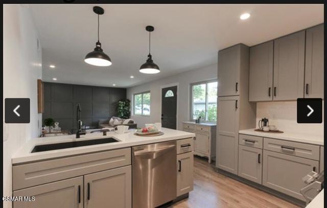 'Turn-key,' single-story cutie with no units on the side, atop or beneath you! This most sought-after model is also in a complex that's once again FHA-approved for financing (but please confirm with your buyer's lender)!! Upgraded kitchen with quartzite counters, stainless steel appliances, etc., remodeled bathroom, dual-pane windows, laminate and tiled floors, recessed lighting, decorative-wood wall, and mountain views. Well-maintained grounds that also offer TWO Community Pools. playground and half-court (basketball), PLUS you can just walk across the street to the beautiful, sprawling Verde Park! Enjoy our gorgeous East Simi's unique vistas, bike paths, hiking trails and MORE GOOD NEWS, in that this home n 'hood are NOT in a Special Fire Hazard Zone, so insurance should be 'normal' and affordable!