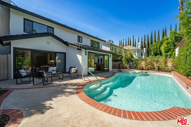 Privately set on a quiet cul de sac in prime Sherman Oaks, this beautifully reimagined residence offers privacy, comfort, and a seamless flow throughout, all set in one of Sherman Oaks' most sought after neighborhoods. Bathed in natural light, oversized windows and expansive sliding doors create a seamless connection between the interior living spaces and the resort style backyard. The open concept layout creates a spacious environment that flows effortlessly between the chef's kitchen, living, family, and dining areas, creating an inviting setting ideal for both everyday living and entertaining. The spacious primary suite serves as a true retreat with serene backyard views and a spa inspired bathroom featuring dual vanities, a freestanding soaking tub, walk in shower, and generous closet space. Three additional bedrooms provide flexibility for family, guests, or a dedicated home office. Designed for effortless entertaining and relaxed Southern California living, the backyard showcases a sparkling pool with cascading water features, multiple lounge and dining areas, and a private setting perfect for relaxing or hosting gatherings. The manicured front grounds create beautiful curb appeal while the expansive driveway provides generous parking. Located just moments from Ventura Boulevard's premier dining, shopping, and entertainment as well as nearby parks and Westfield Fashion Square, this is a rare opportunity to enjoy beautifully updated living in the heart of Sherman Oaks.