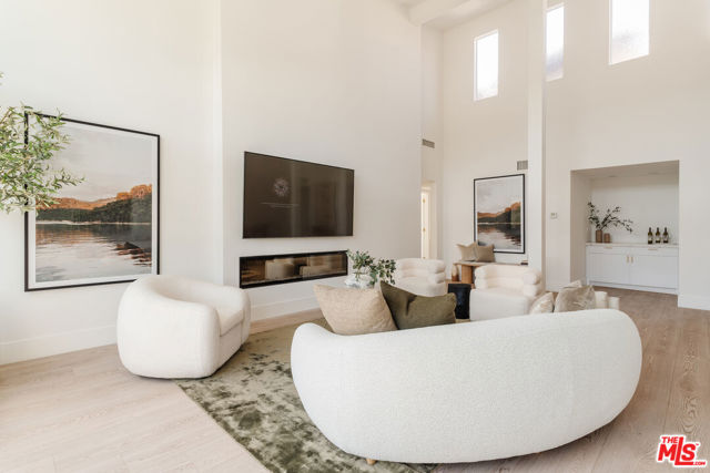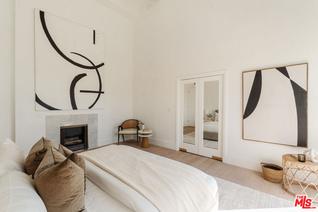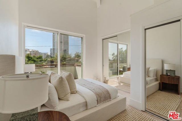 A thoughtfully renovated true Penthouse at the epicenter of Beverly Hills, Holmby Hills, Century City, and Westwood, delivering dramatic scale, radiant natural light, and skyline views in one of the Westside's most coveted pockets. Soaring ceiling heights create architectural volume rarely found in condominium living. Walls of glass flood the interiors with sunlight while framing sweeping Century City skyline views, vibrant sunsets, and even a subtle peek-a-boo ocean view on clear evenings. The grand living room is anchored by a custom fireplace and wide-plank wood flooring, offering true entertaining proportions. An oversized private balcony extends directly off the main living space, creating seamless indoor-outdoor flow and a front-row seat to the skyline at golden hour. The kitchen connects effortlessly to the living area, designed for conversation, hosting, and everyday ease. Privately positioned, the primary suite serves as its own retreat, complete with a fireplace, generous walk-in closet, and spa-inspired bath with dual vanities and an oversized shower. A second expansive balcony spans the bedroom wing, offering a quieter outdoor escape with open sky, fresh coastal air, and stunning sunset views. The secondary bedroom adapts easily as a guest suite or sophisticated office. In-unit laundry and two side-by-side secured parking spaces add practical convenience, a true luxury in this location. Residents enjoy a pool, spa, gym, and sauna, all moments from world-class dining, shopping, UCLA, Beverly Hills, and Century City. Penthouse living. Dramatic volume. Two oversized balconies. Skyline views. Sunset exposure. Future expansion potential. Rare, Refined and Ready!