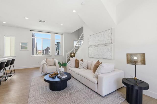 Built in 2022, this desirable corner-unit home with a private yard offers a rare blend of modern comfort, energy efficiency, and prime Silicon Valley convenience. This beautifully designed residence features soaring ceilings, abundant natural light, and an open-concept floor plan ideal for both everyday living and entertaining. A standout feature is the exceptionally spacious primary suite, offering a true retreat with ample room to relax and unwind. Thoughtfully constructed with premium sound insulation for enhanced privacy, the home delivers a peaceful and refined living experience. Solar power helps keep electricity costs low, while HOA dues include water, trash, pest control, and annual window cleaning for added ease and value. Enjoy inviting outdoor spaces including a welcoming front patio and a versatile private yard, all just a short walk to Seven Seas Park. Ideally located with effortless access to Highways 101, 85, and 237, and just minutes from major tech campuses such as Google, Meta, and NVIDIA, this home offers luxury, convenience, and lifestyle in one exceptional package.