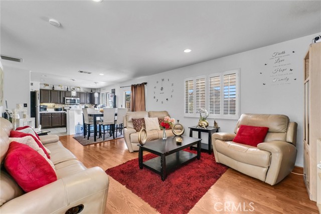 Welcome to 16943 Grand Triassic Lane—an exceptional home nestled in one of Victorville’s most sought-after neighborhoods. This move-in ready residence has been meticulously maintained and offers the perfect blend of comfort, style, and functionality. Boasting approximately 1,898 square feet of living space, this home features a spacious open-concept layout ideal for modern living. The kitchen is a true highlight, offering abundant cabinetry and seamless flow into the family room—perfect for entertaining guests or enjoying everyday moments. A convenient downstairs bedroom provides flexibility for guests, a home office, or multigenerational living. Upstairs, you’ll find a generously sized primary suite complete with a spacious walk-in closet, along with two additional well-proportioned bedrooms featuring ample closet space. A dedicated upstairs laundry room adds everyday convenience. Additional features include a full two-car garage and recessed lighting throughout the home, enhancing its bright and inviting atmosphere. Step outside to a beautifully landscaped backyard with a covered patio—perfect for relaxing or entertaining—with plenty of space to design your dream pool. This is a true must-see home offering comfort, space, and a prime location—don’t miss this incredible opportunity!