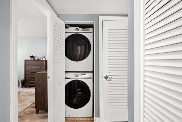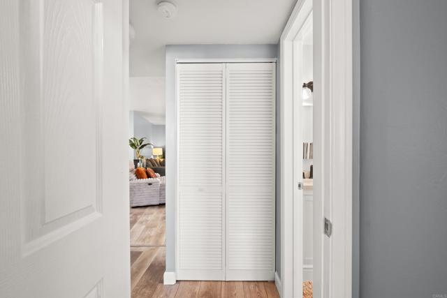 Tucked into a quiet cul-de-sac, this upgraded ground-level corner residence offers the perfect blend of privacy, comfort, and central convenience. With an abundance of natural light and an open, well-proportioned layout, the home feels both inviting and functional from the moment you walk in. Tastefully updated, the interior features hardwood flooring throughout, generously sized rooms, and ceiling fans in every space for added comfort. A forced-air heating system ensures year-round efficiency. The kitchen has been refreshed with granite countertops, refinished cabinetry, and updated appliances, creating a clean and modern feel. Everyday living is made easy with an in-unit washer and dryer, along with a dedicated parking space and private storage closet. Residents also enjoy access to a community pool, perfect for relaxing on warm San Diego days. The HOA covers water, sewer, and trash, adding even more value and convenience. VA financing welcome, this is a great opportunity for a wide range of buyers looking for a well-located, move-in ready home.
